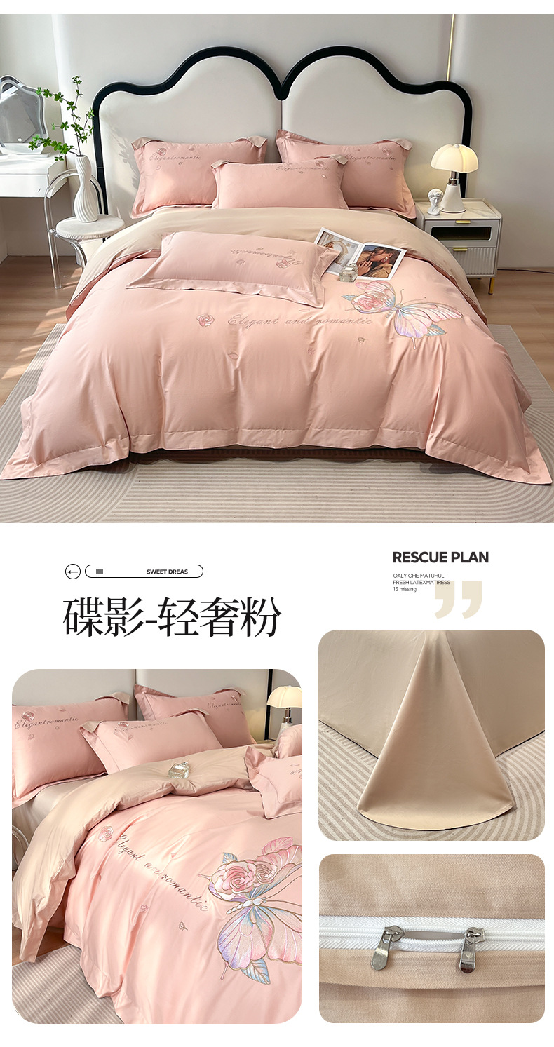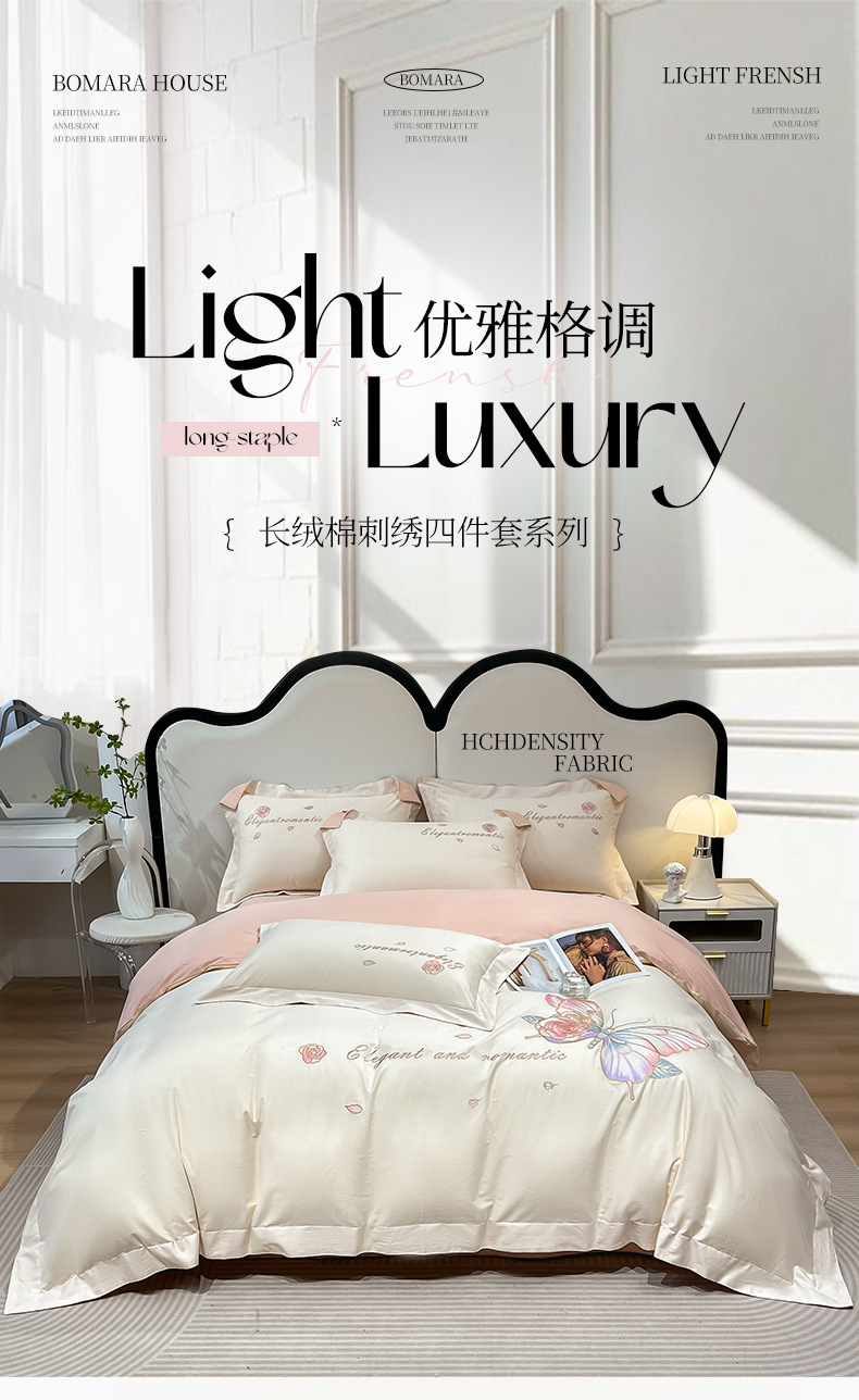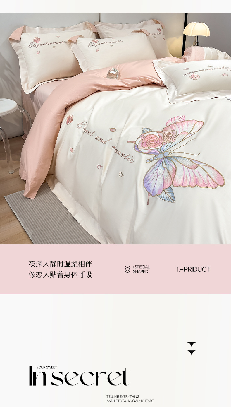 하이 엔드 코튼 긴 스테이플 코튼 자수 4 피스 세트 두꺼운 피부 친화적 인 통기성 퓨어 코튼 자수 침대 시트 퀼트 커버 침구스토어 가기