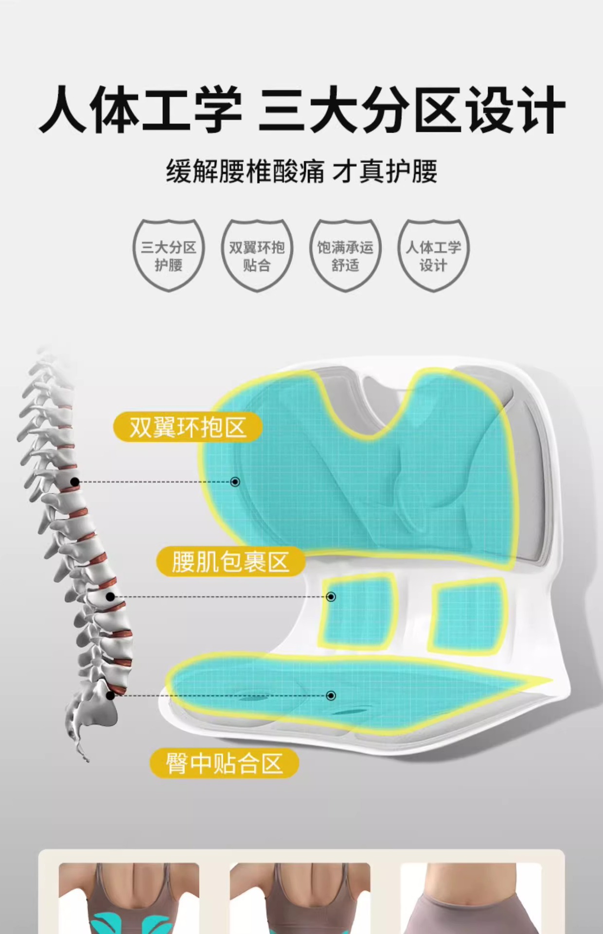 허리 쿠션 사무실 앉아있는 의자 쿠션 허리 지원 아름다운 엉덩이 교정 앉아 자세 학생 엉덩이 쿠션 요추 지원
