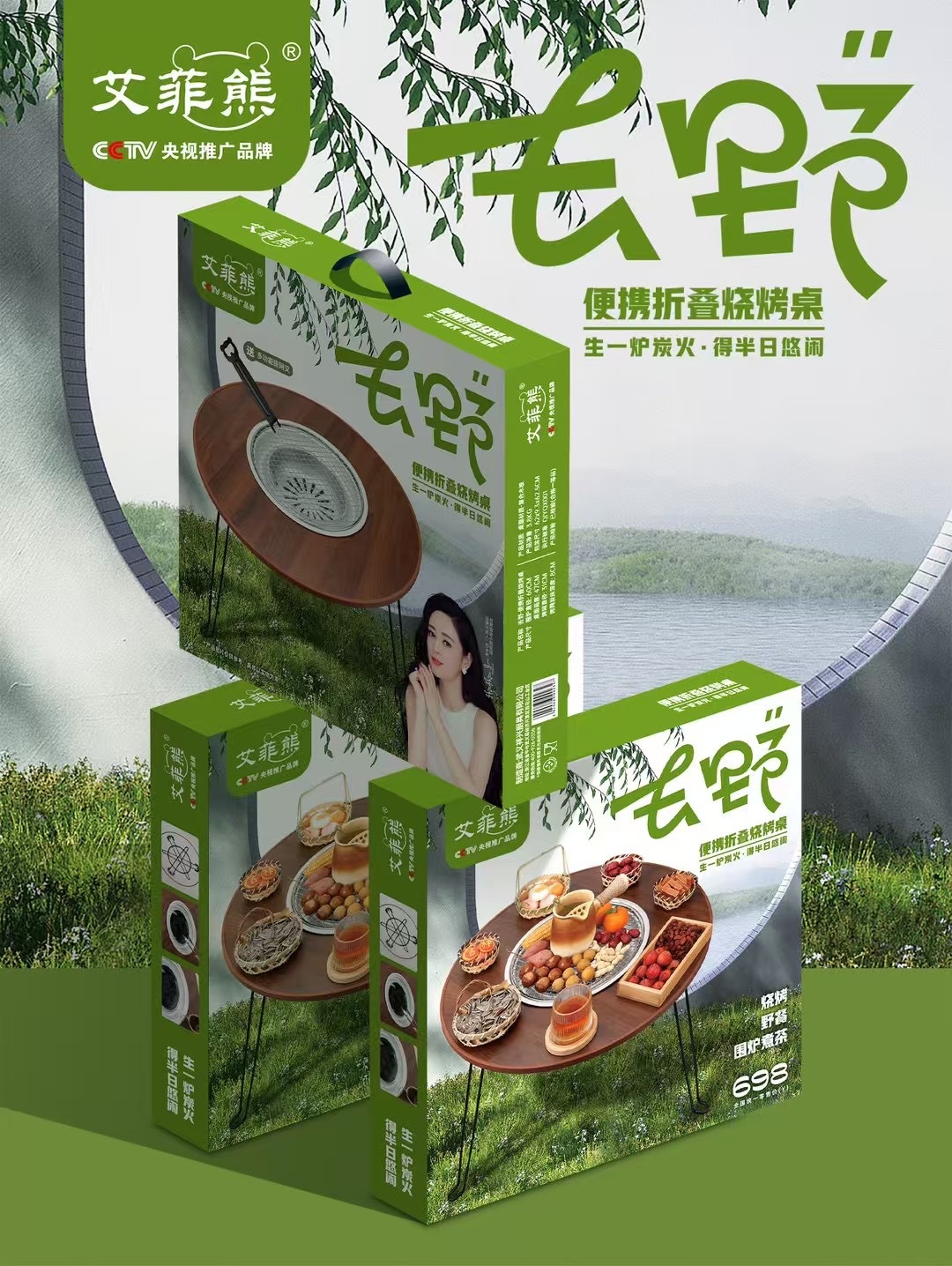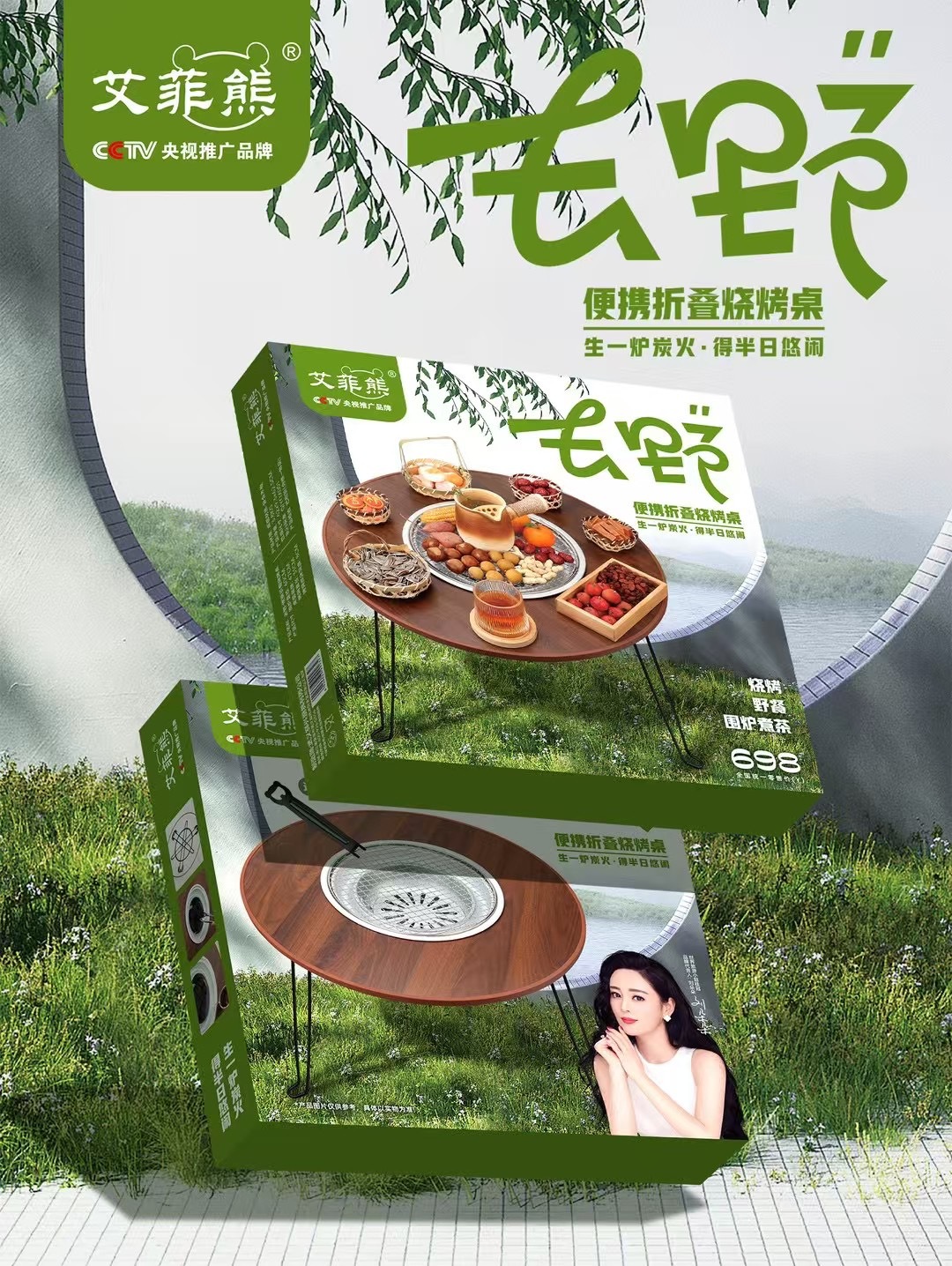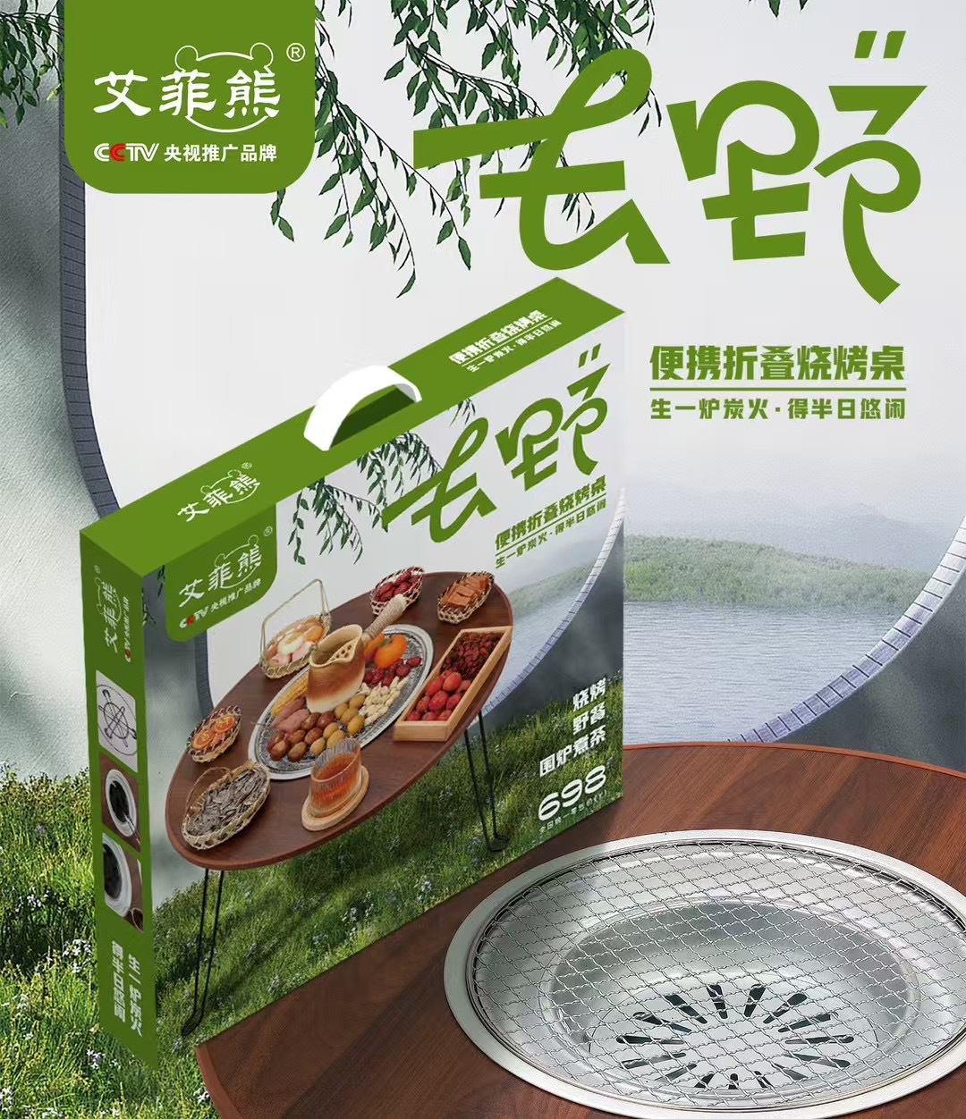 다기능 야외 가정용 휴대용 접이식 캠핑 바베큐 테이블 그릴판 (화덕, 그릴, 차를 끓이는 테이블)스토어 가기