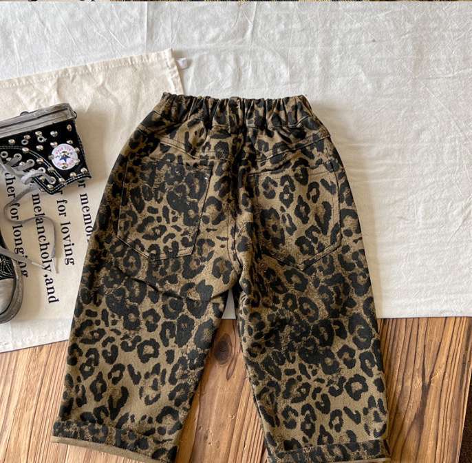 어린이 착용 여름 레오파드 무늬 찢어진 바지 얇은 바지 유행 멋진 소년 소녀스토어 가기