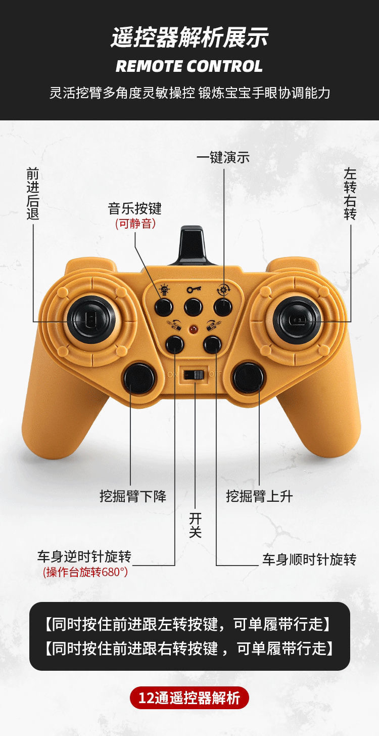 • 12채널 굴삭기 [합금] 노란색 시계 유도 듀얼 모드
