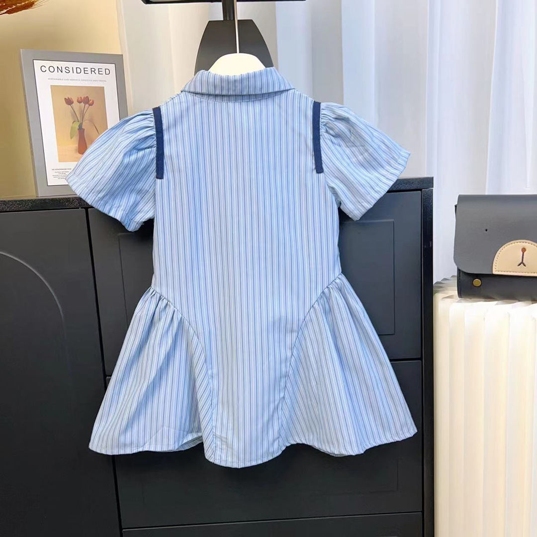 여자 여름 대학 스타일 원피스 2025 새로운 어린이 폴로 칼라 짧은 소매 셔츠 원피스 아기 여름 원피스