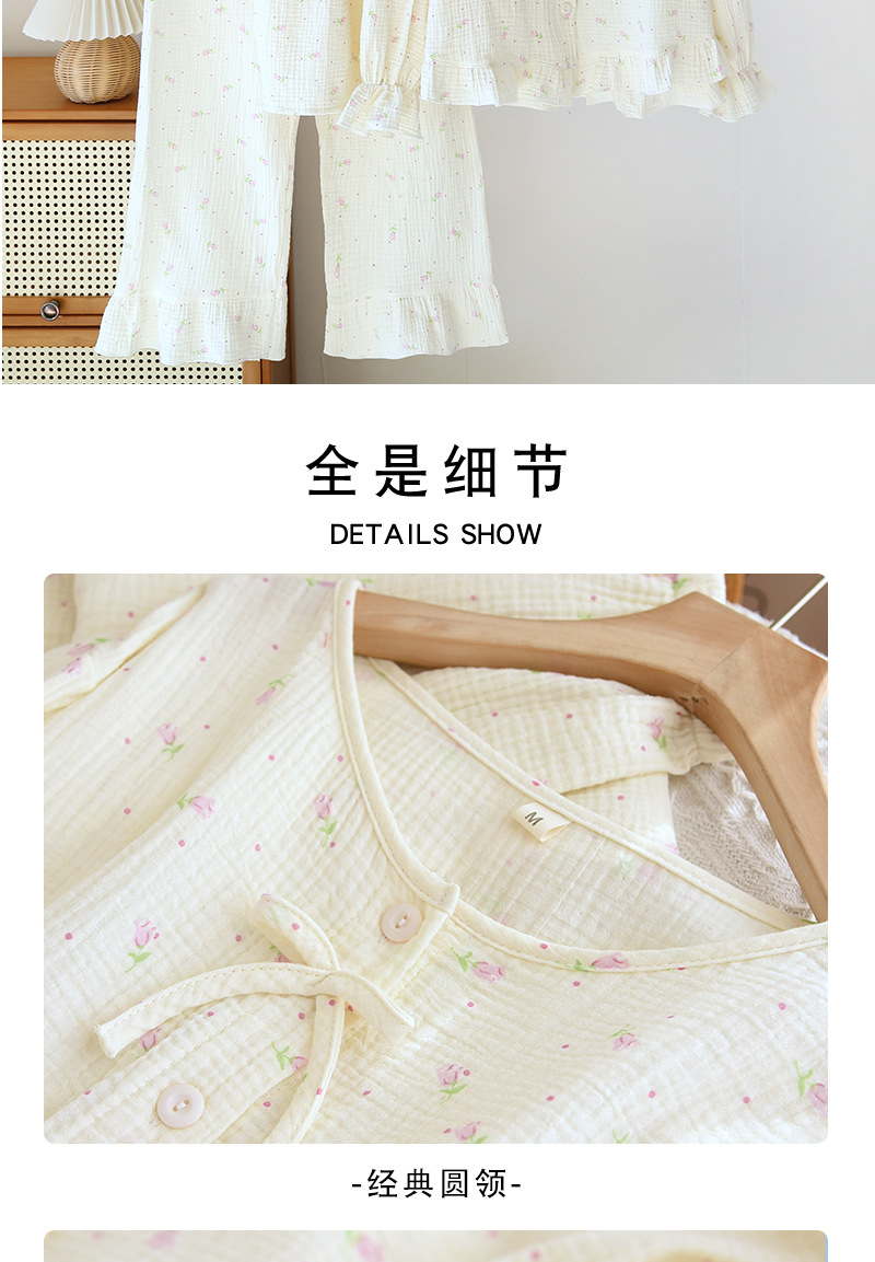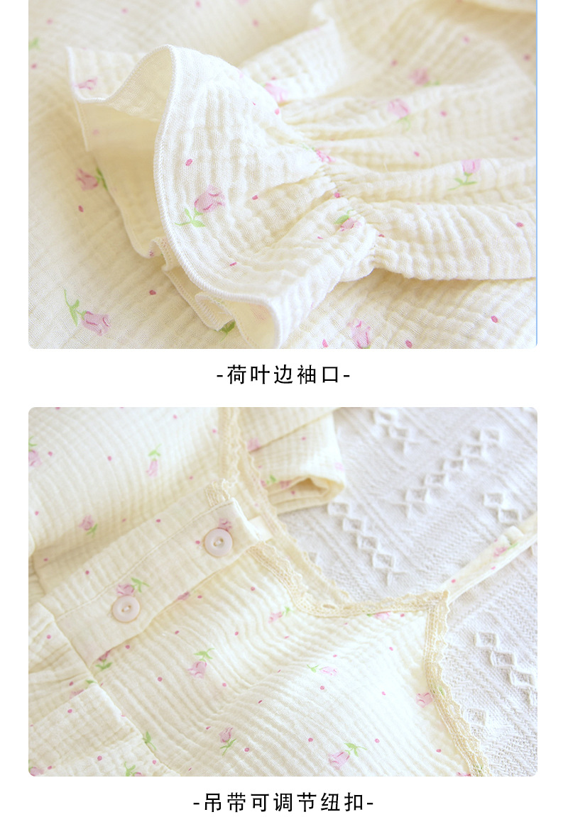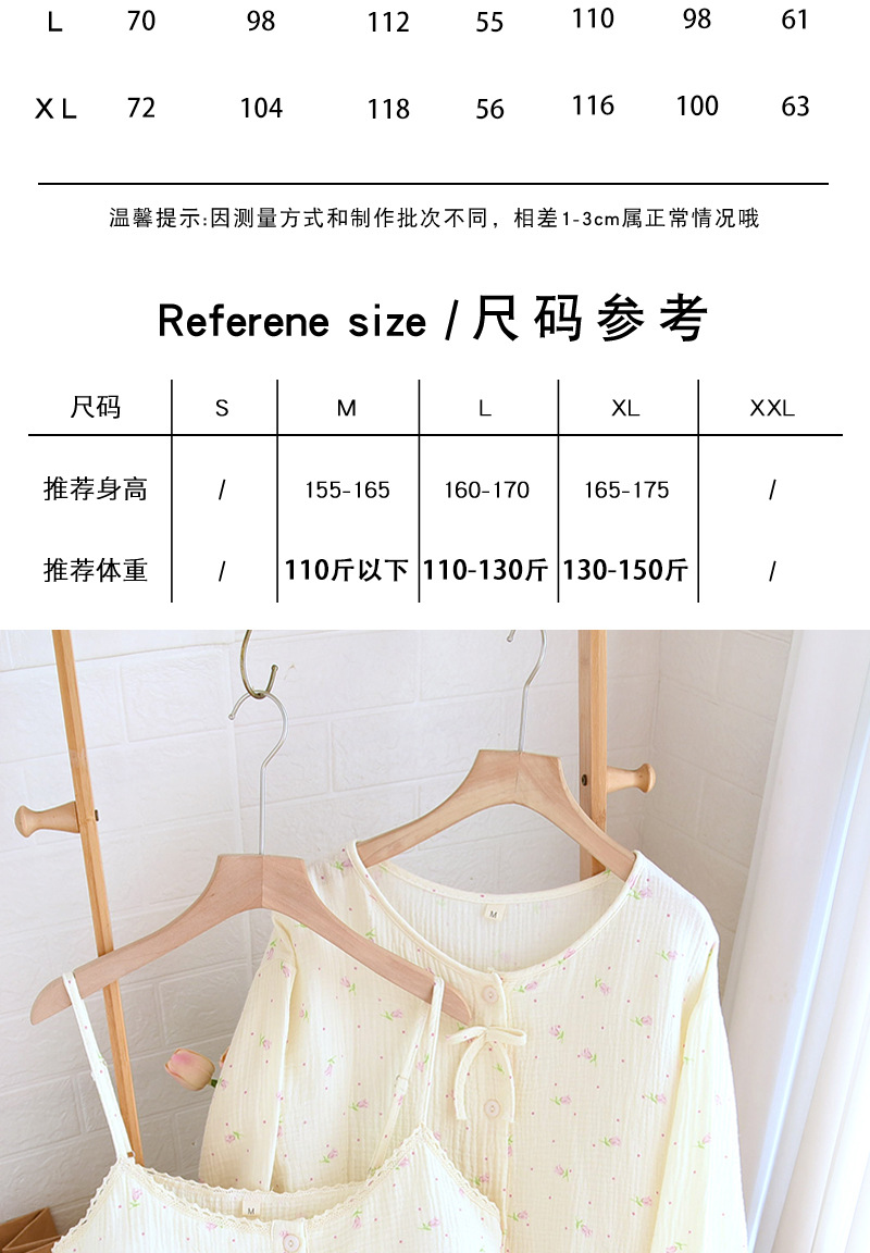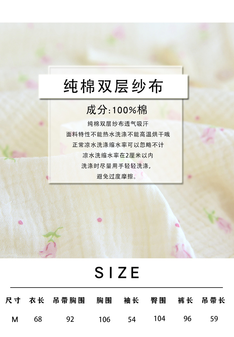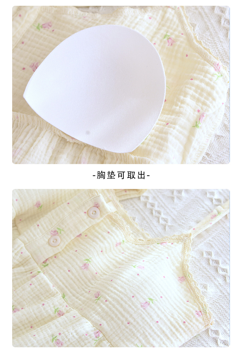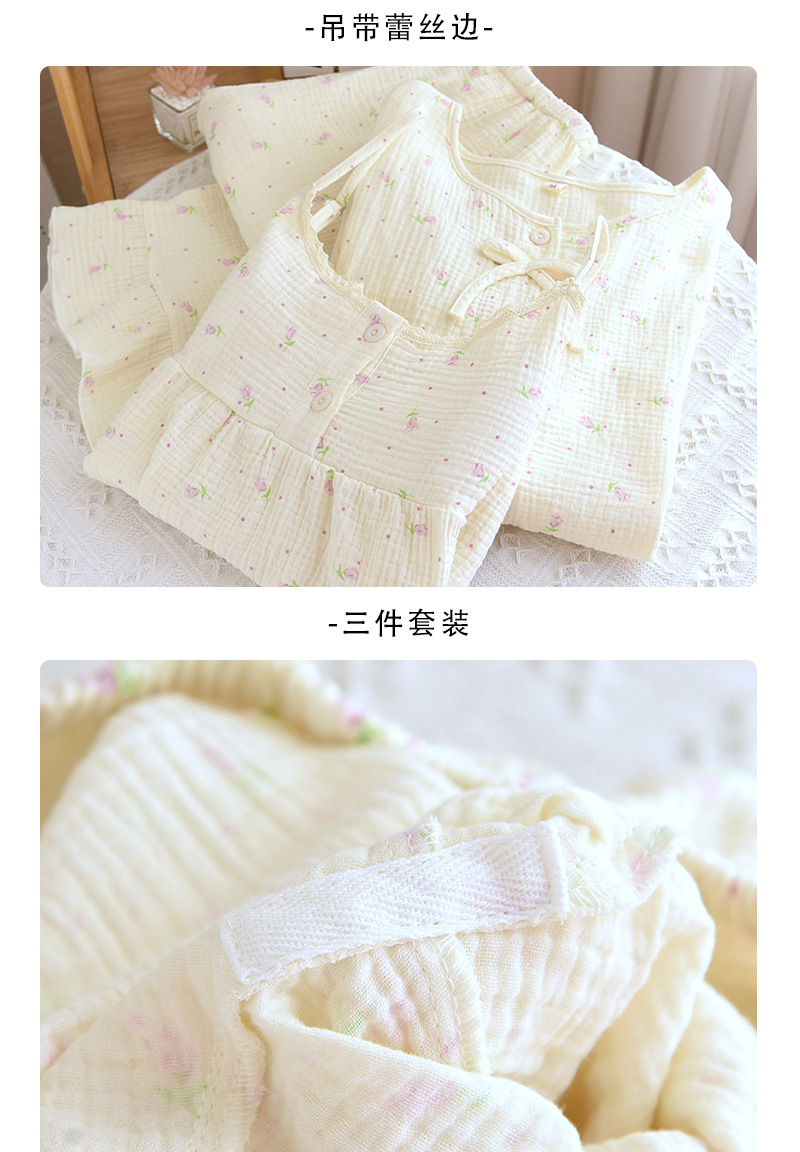 새로운 스타일의 잠옷, 봄, 가을 순면 거즈 소재, 가슴 패드가 있는 달콤한 소녀용 서스펜더 3피스 세트, 집 밖에서 입을 수 있는 옷