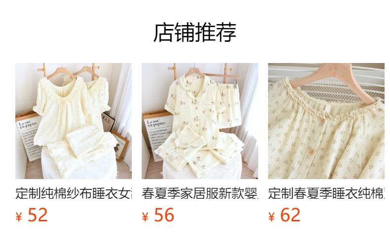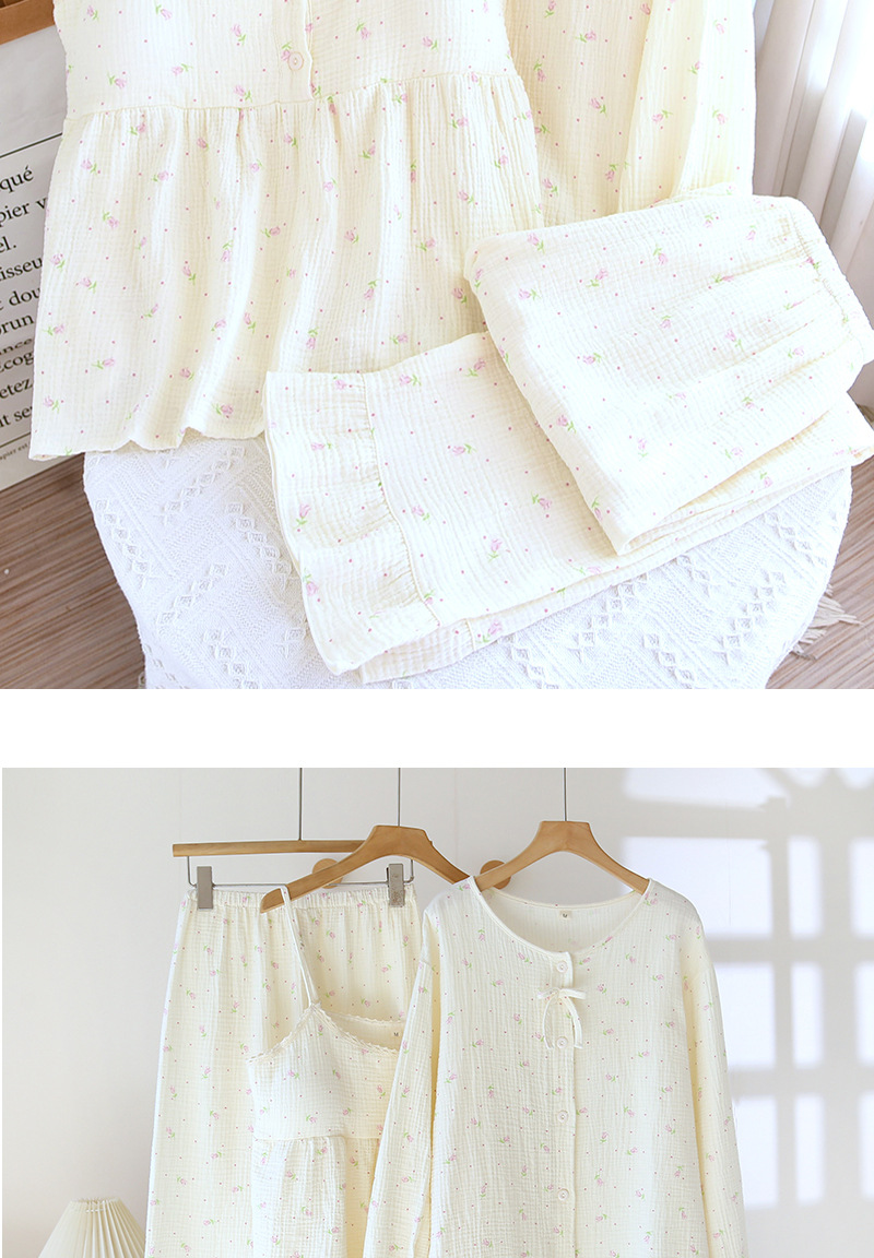 새로운 스타일의 잠옷, 봄, 가을 순면 거즈 소재, 가슴 패드가 있는 달콤한 소녀용 서스펜더 3피스 세트, 집 밖에서 입을 수 있는 옷스토어 가기