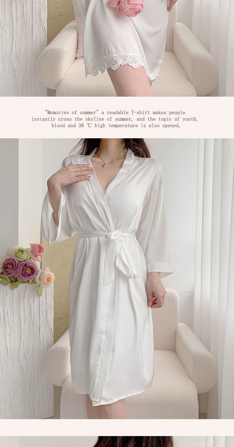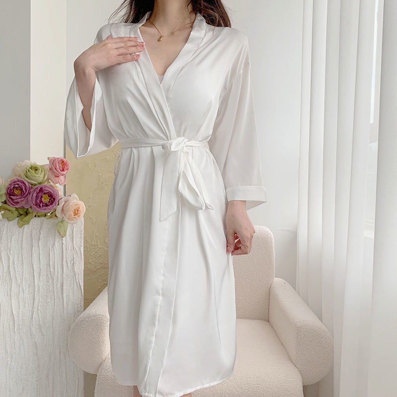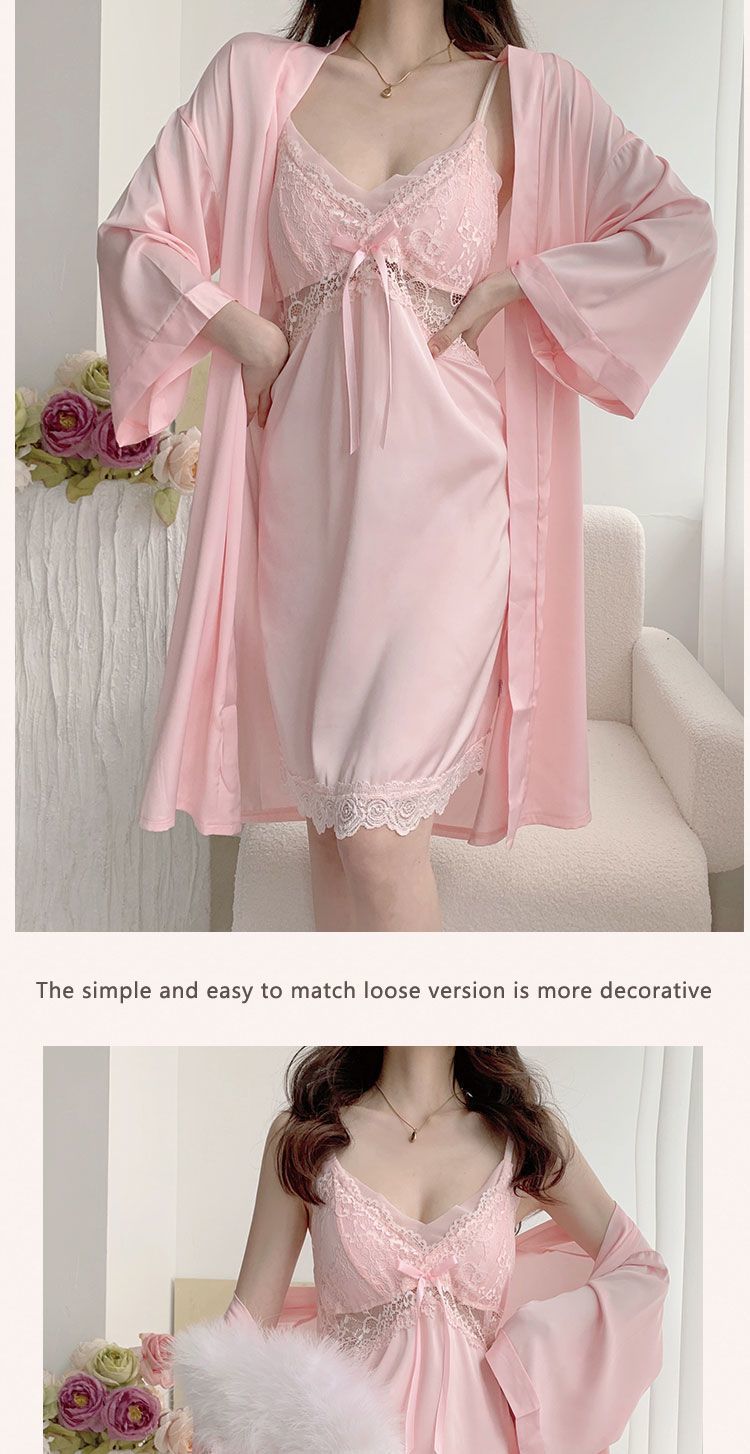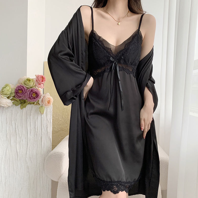 고급 투피스 잠옷 여성의 봄과 가을 아이스 실크 2025 여름을위한 가슴 패드 슬링 나이트 가운 새로운 섹시한 가벼운 럭셔리스토어 가기