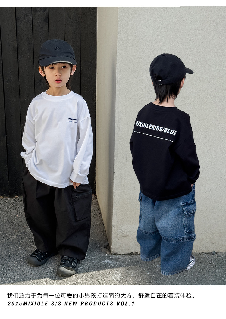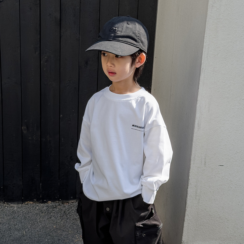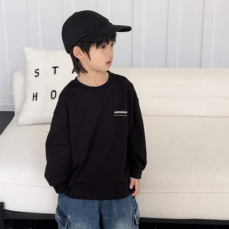 남자들의 긴팔 티셔츠 면 잘 생긴 소년의 인쇄 된 트렌디 브랜드 톱 2025 새로운 어린이 봄베이스 셔츠스토어 가기