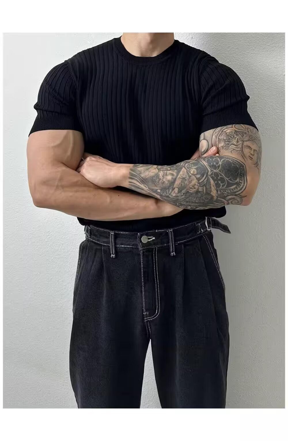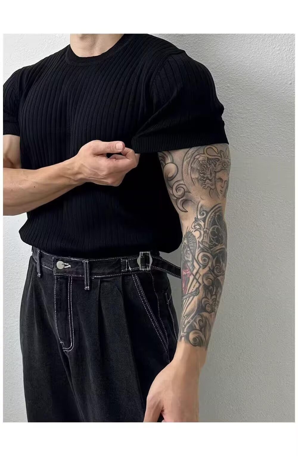 유럽과 미국의 패션 하이 엔드 티셔츠 남성 여름 니트웨어 통기성 캐주얼 남성 반팔 라이트 성숙한 남성 티셔츠 탑