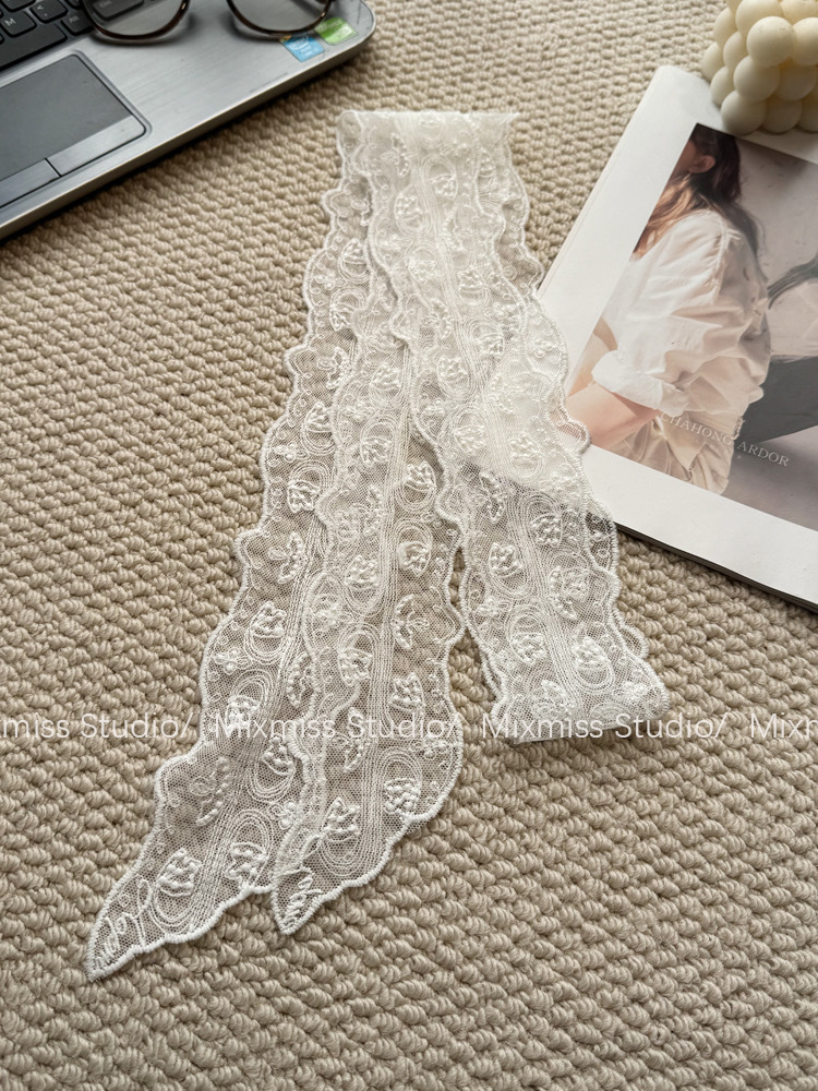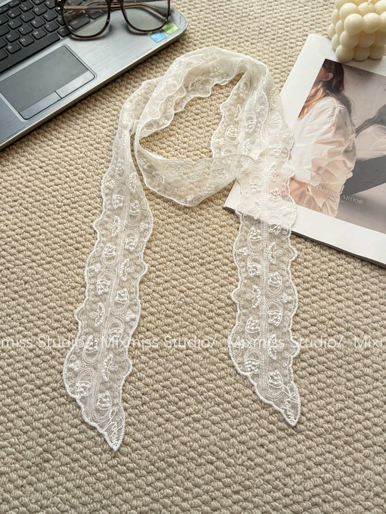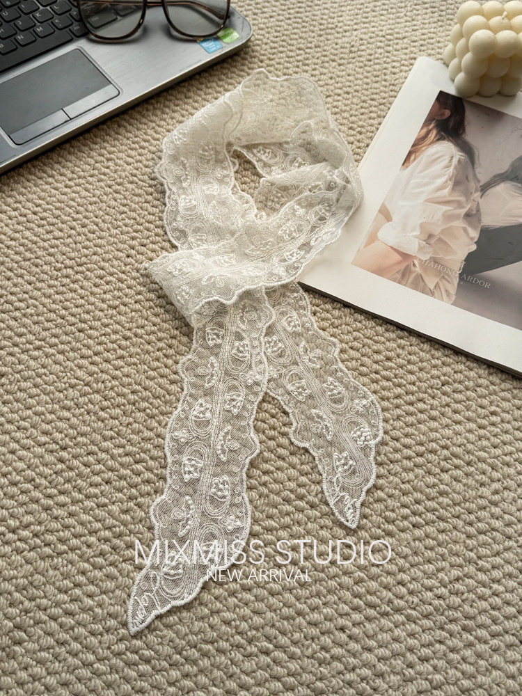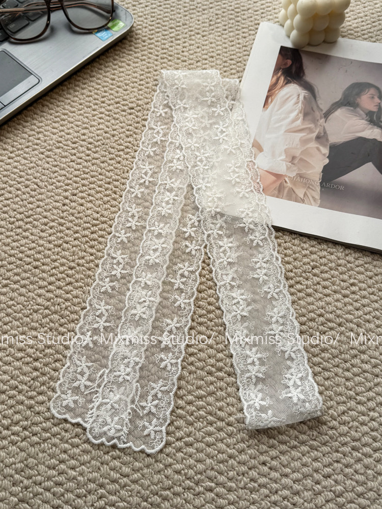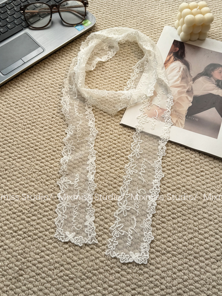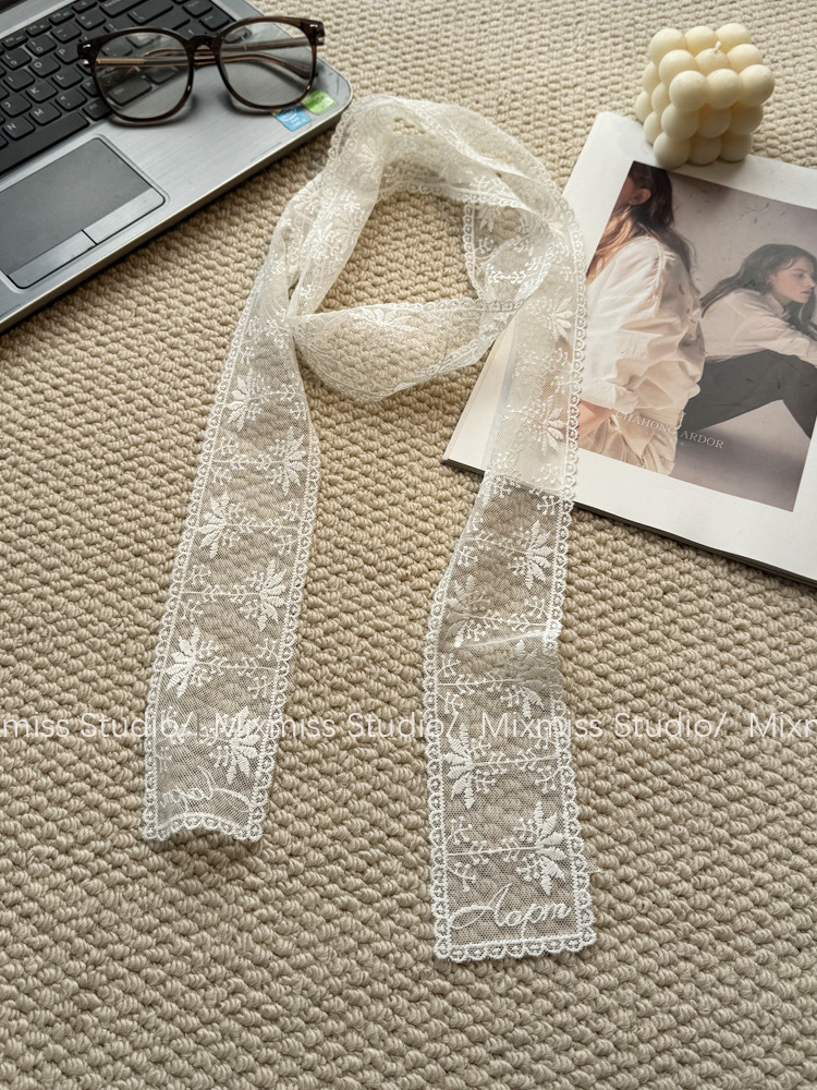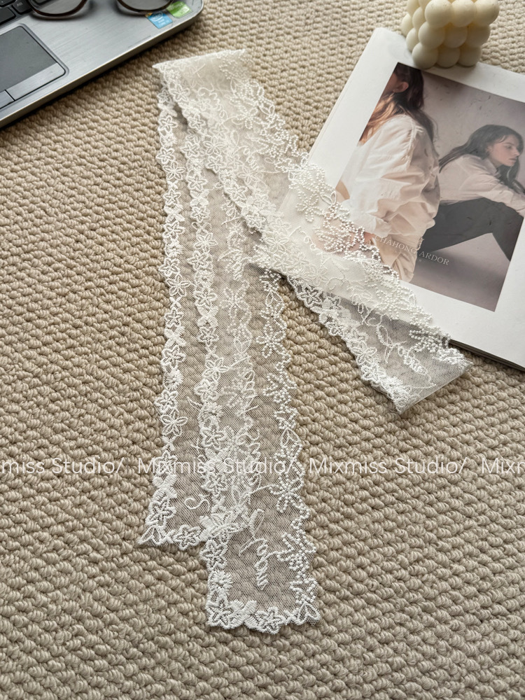 프랑스 스타일 플랫 앵글 레이스 롱 리본 여성용 실크 스카프 헤어 벨트 봄과 여름 올 매치 장식 자수 벨트 한국 이스트 게이트