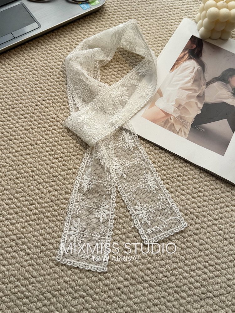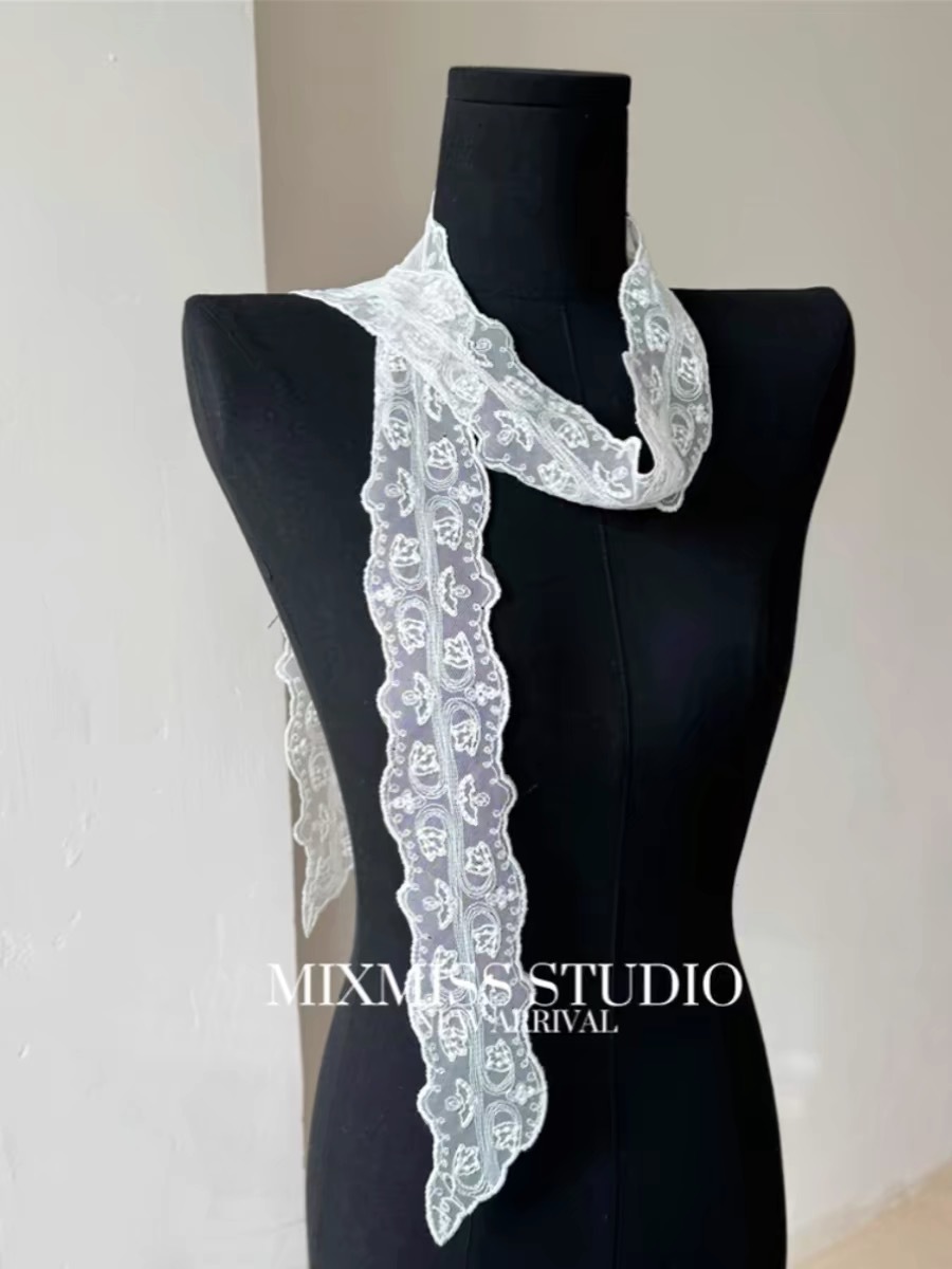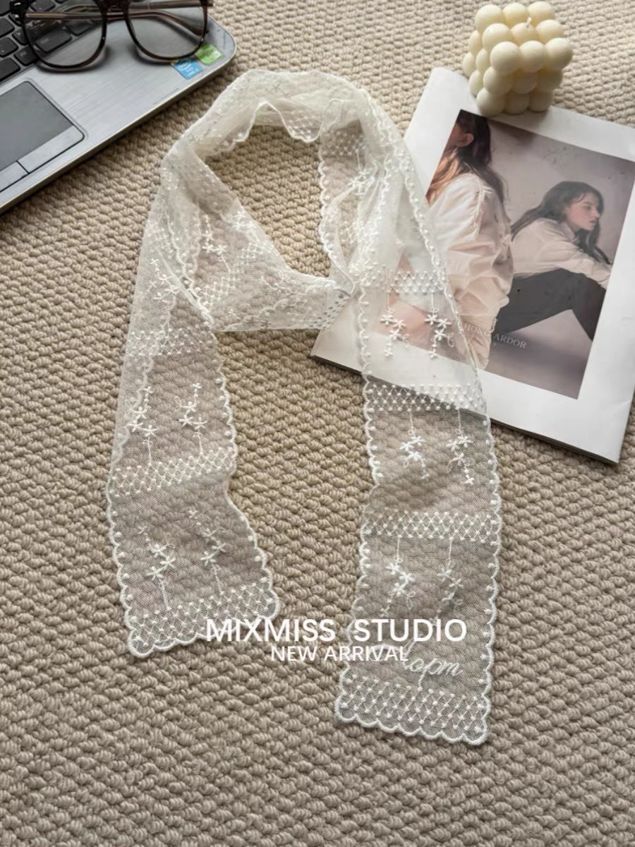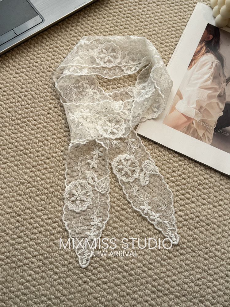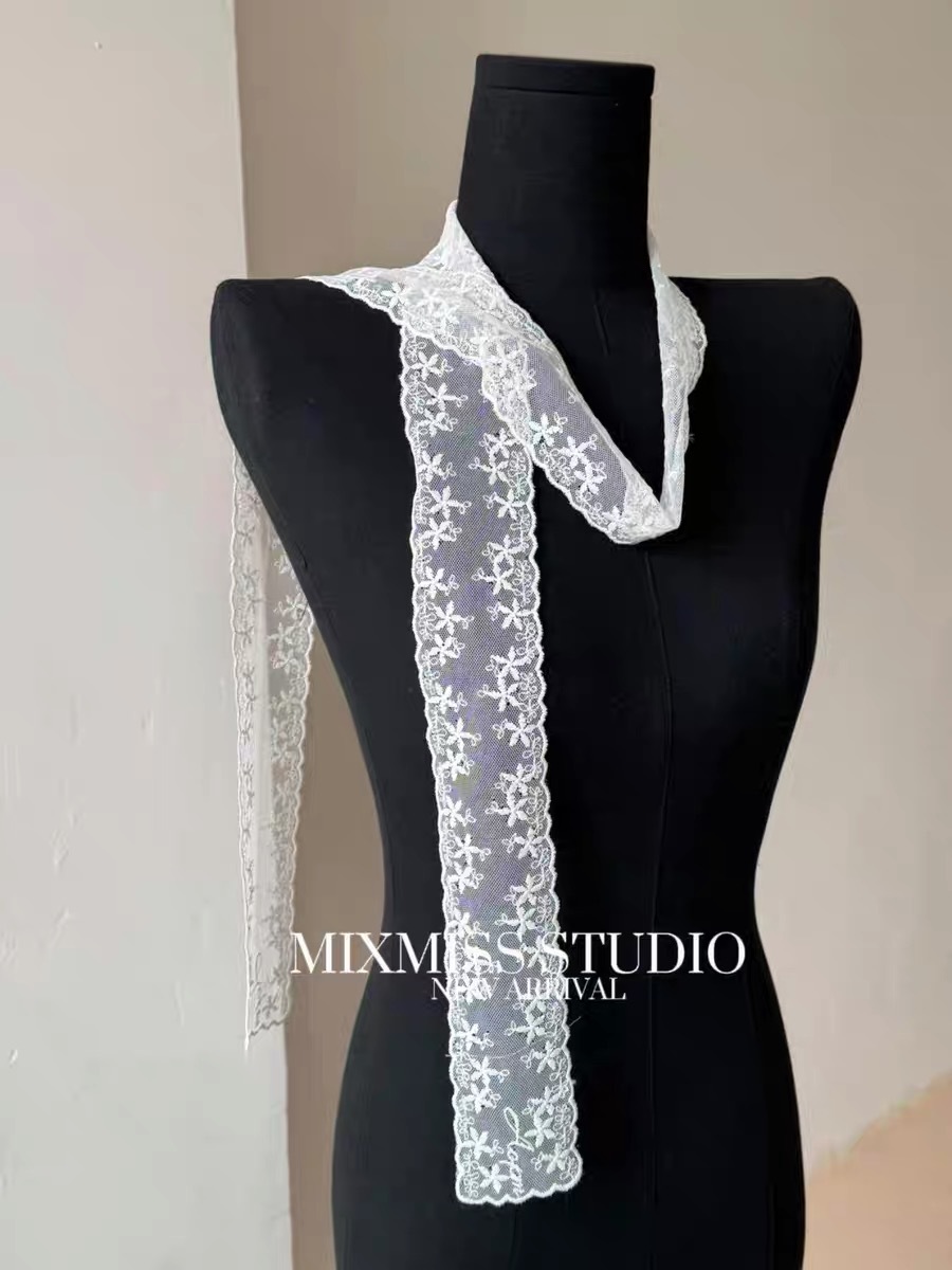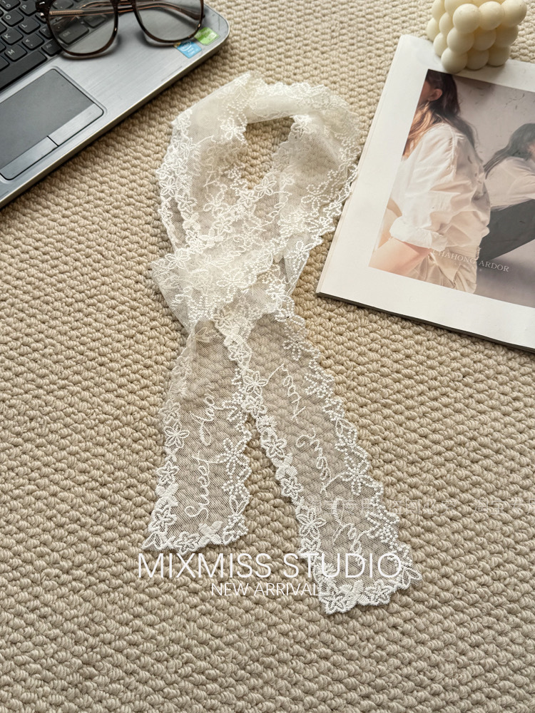 프랑스 스타일 플랫 앵글 레이스 롱 리본 여성용 실크 스카프 헤어 벨트 봄과 여름 올 매치 장식 자수 벨트 한국 이스트 게이트