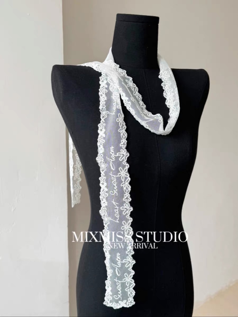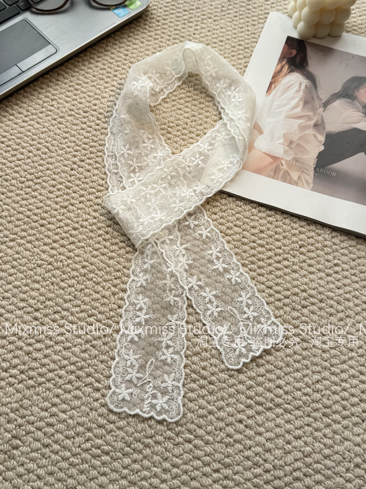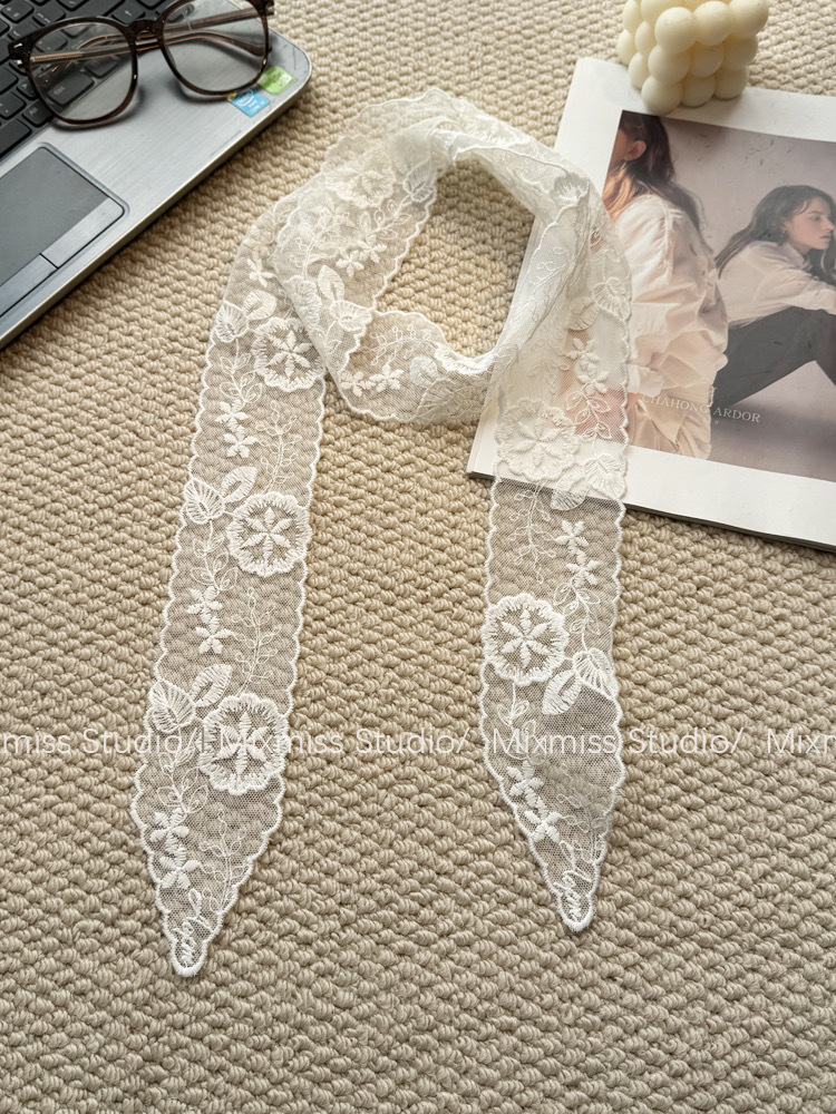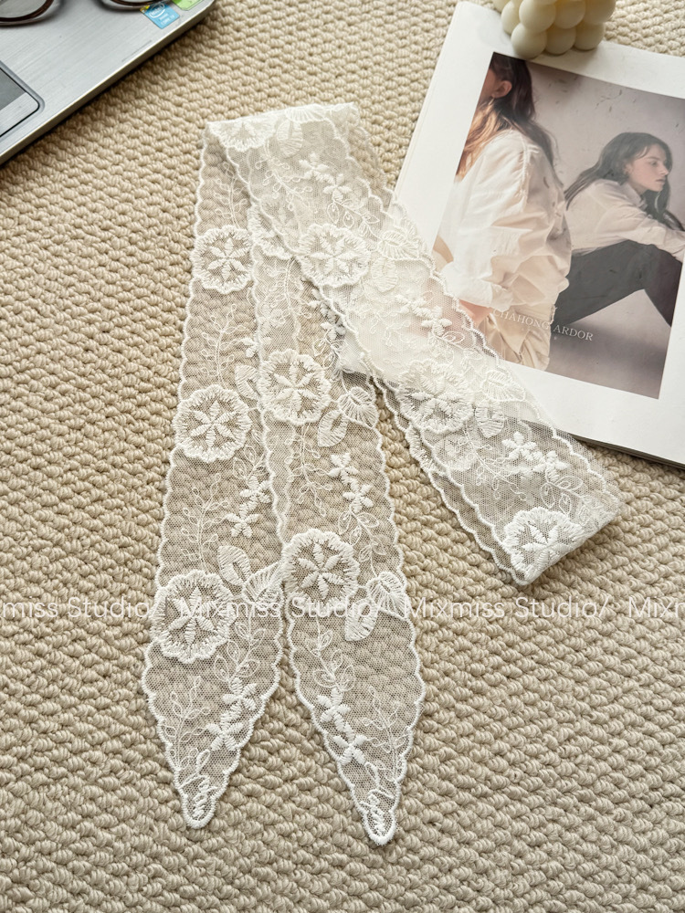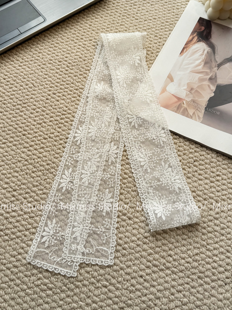 프랑스 스타일 플랫 앵글 레이스 롱 리본 여성용 실크 스카프 헤어 벨트 봄과 여름 올 매치 장식 자수 벨트 한국 이스트 게이트스토어 가기
