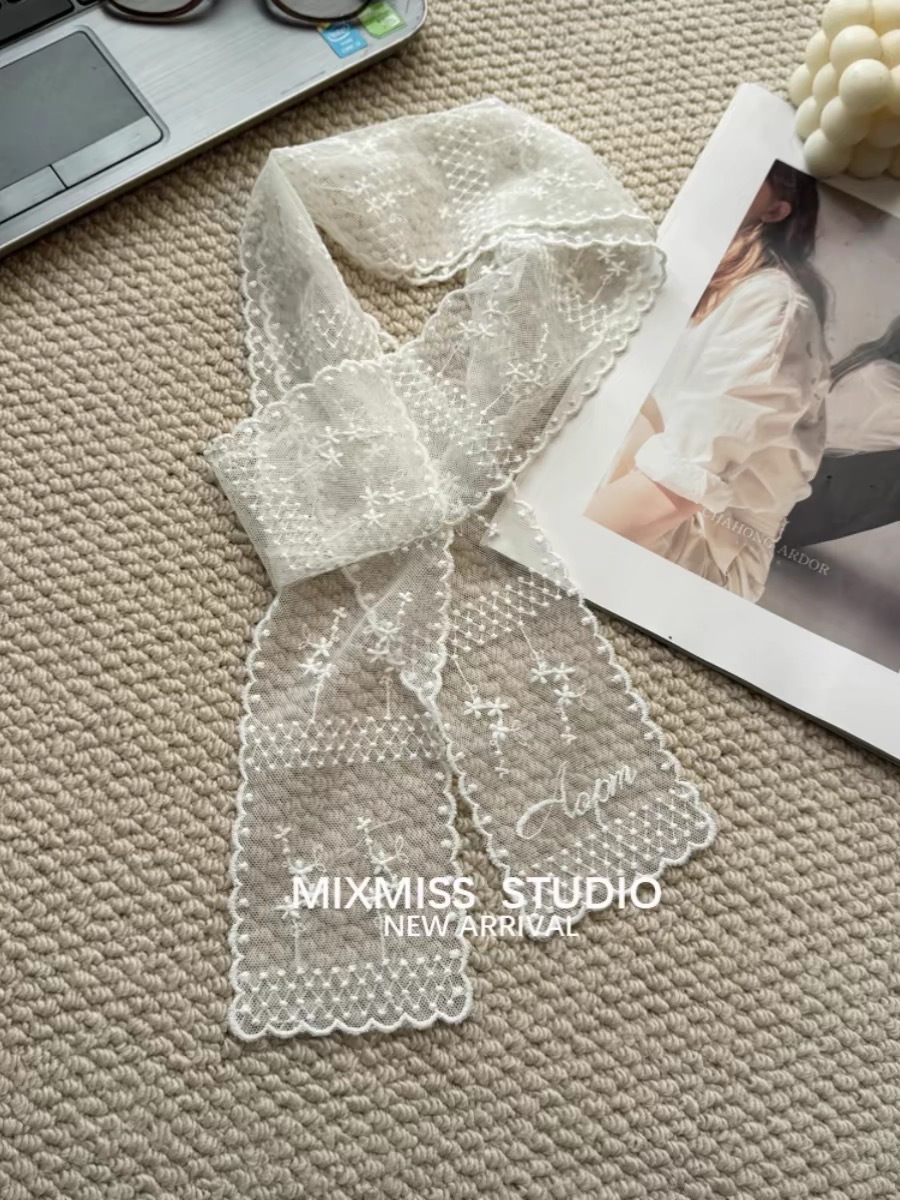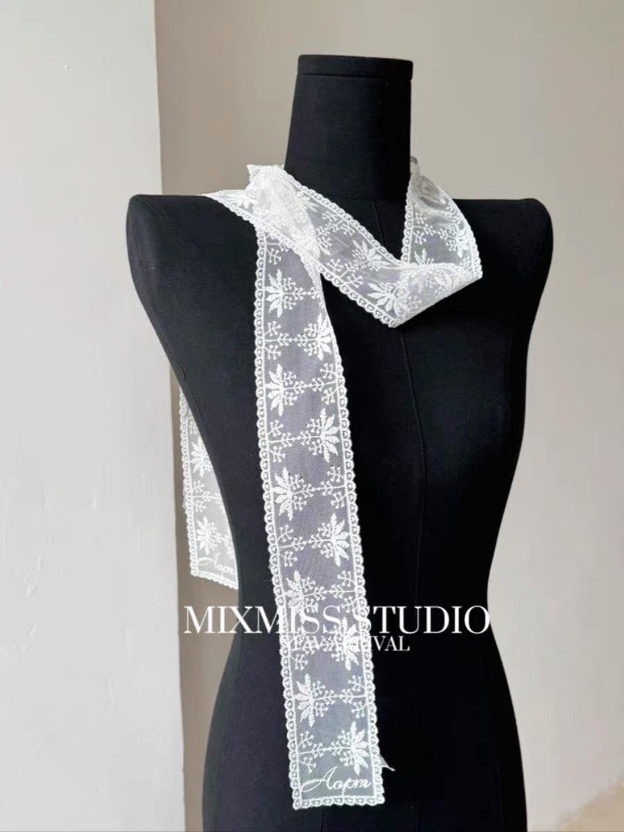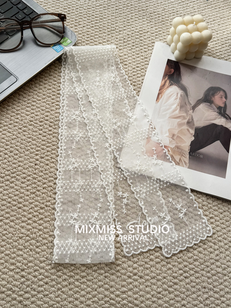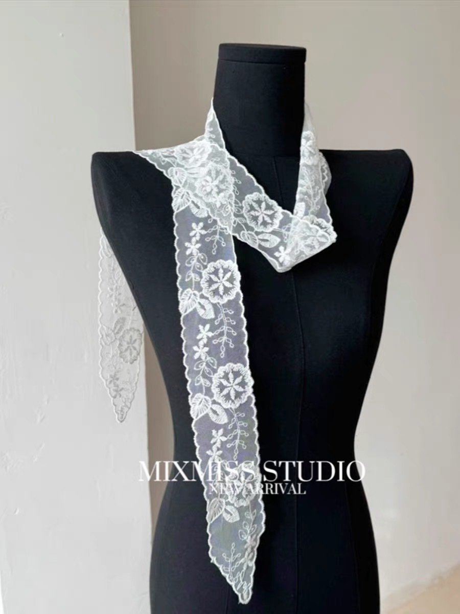 프랑스 스타일 플랫 앵글 레이스 롱 리본 여성용 실크 스카프 헤어 벨트 봄과 여름 올 매치 장식 자수 벨트 한국 이스트 게이트스토어 가기