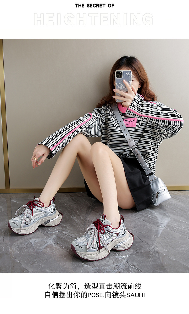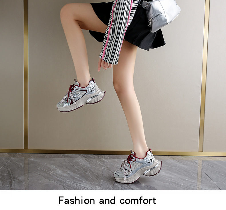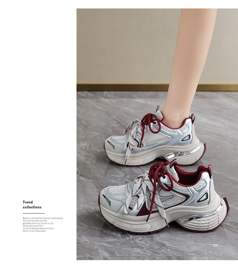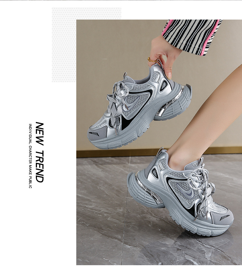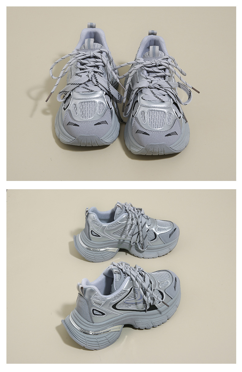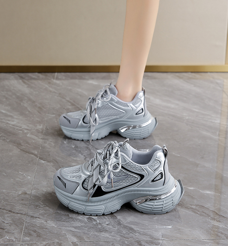 슈퍼 파이어 두꺼운 단독 신발 여성의 높은 회색 토레 신발 2025 새로운 여성 신발 유럽 역 통기성 운동화 여성 메쉬