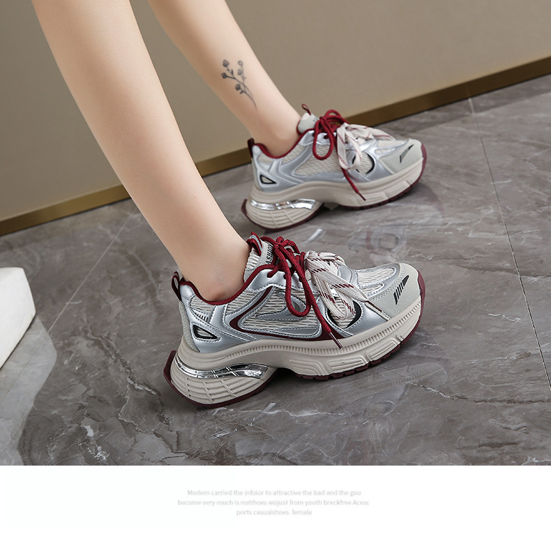 슈퍼 파이어 두꺼운 단독 신발 여성의 높은 회색 토레 신발 2025 새로운 여성 신발 유럽 역 통기성 운동화 여성 메쉬스토어 가기