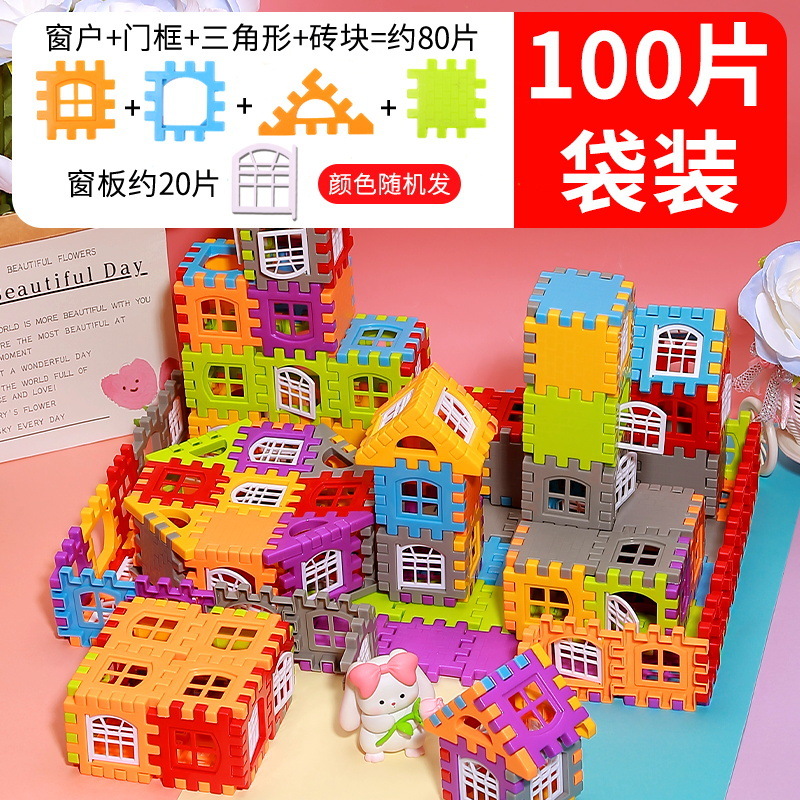• 기본 세트 [가방에 100개, 창문 20개 포함] - 많을수록 재미있어집니다. [하우스 빌딩 블록 및 퍼즐 장난감]