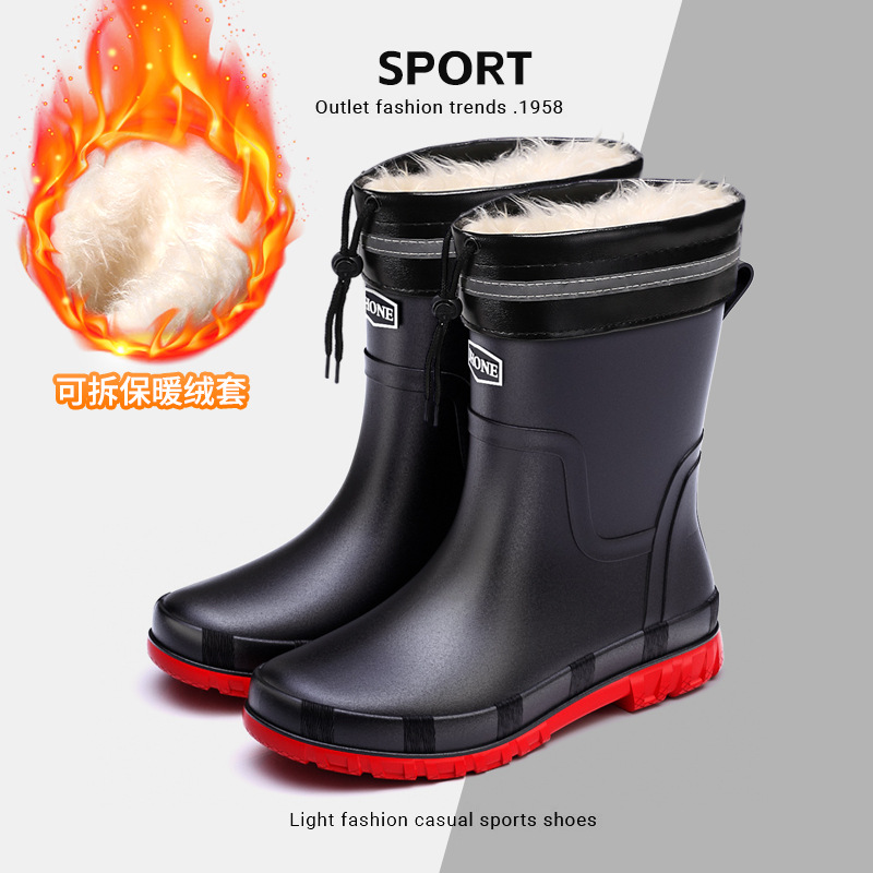 번들 입 남자 중간 및 짧은 비 신발 밤 남자 반사 스트립 방수 발 보호 낚시 남자 부츠 원피스 고무 신발 패션 워터 부츠