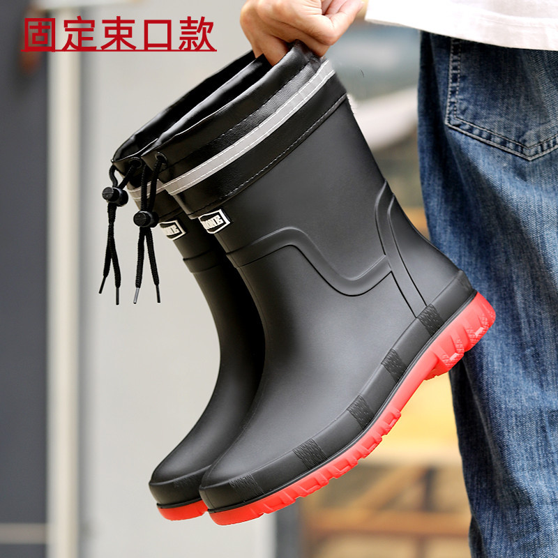 번들 입 남자 중간 및 짧은 비 신발 밤 남자 반사 스트립 방수 발 보호 낚시 남자 부츠 원피스 고무 신발 패션 워터 부츠스토어 가기