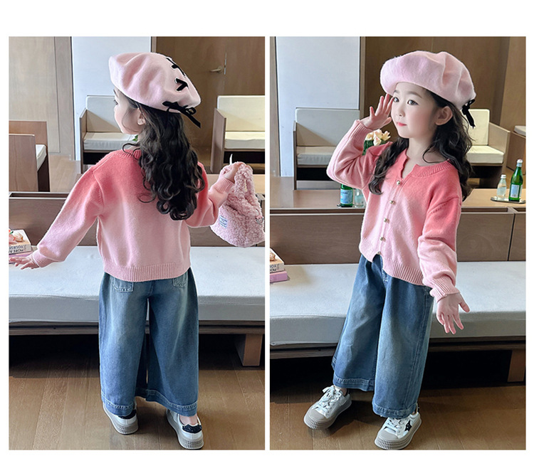 소녀의 점진적 컬러 스웨터 세트 봄과 가을 2025 새로운 스타일 유행 어린이 니트 셔츠 탑 청바지