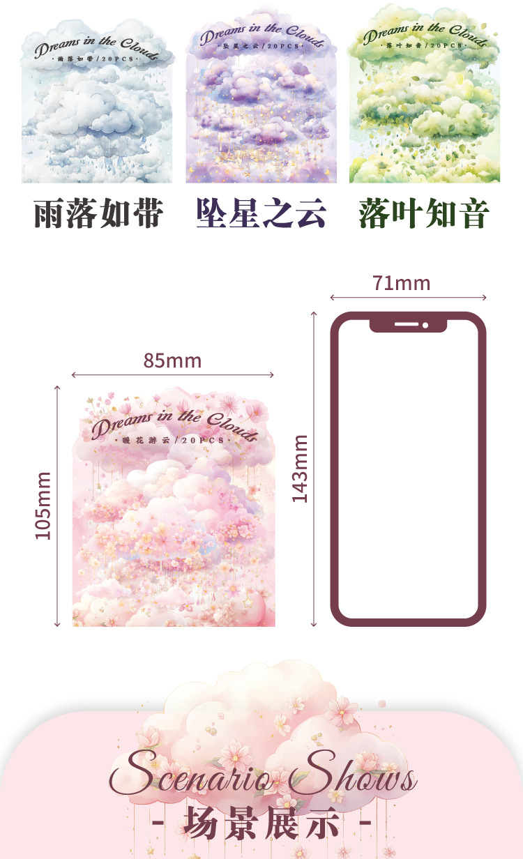 특수 모양의 구름 테마 소재 스티커에 종이 트레일 대형 장식 스티커 가방 구름 꿈 시리즈 20
