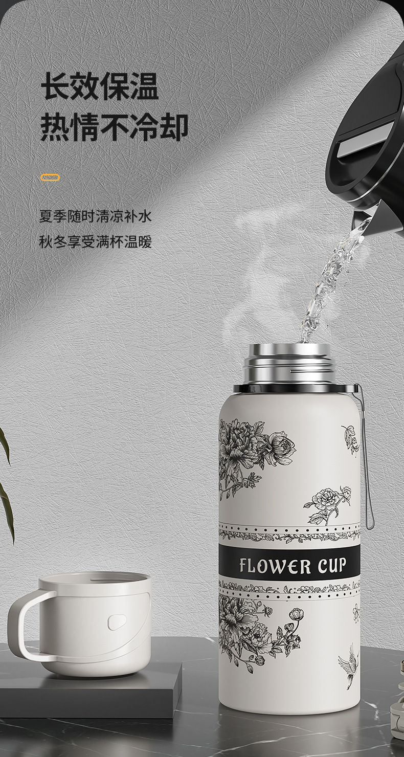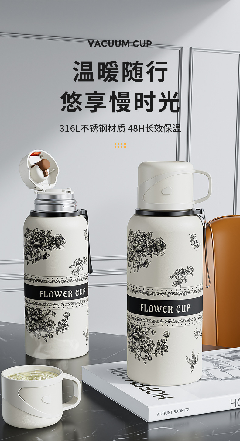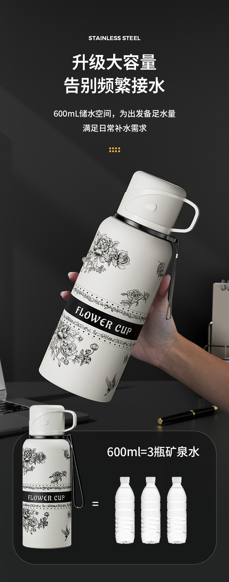 새로운 치자나무 고급 물컵 316L 스테인레스 스틸 보온병 컵 대용량 간단한 휴대용 남성과 여성의 차 컵