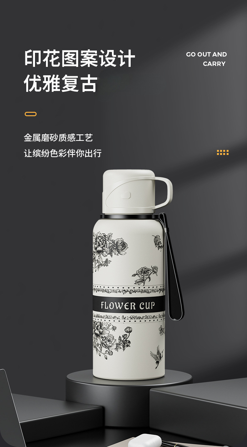 새로운 치자나무 고급 물컵 316L 스테인레스 스틸 보온병 컵 대용량 간단한 휴대용 남성과 여성의 차 컵스토어 가기