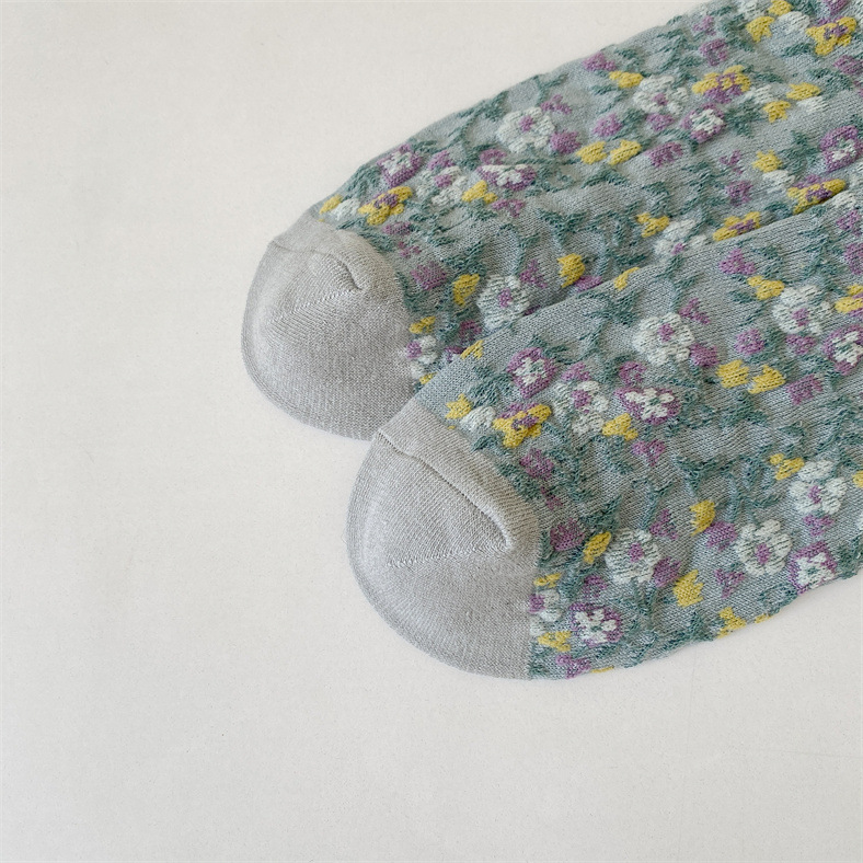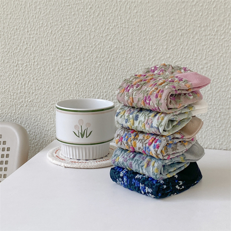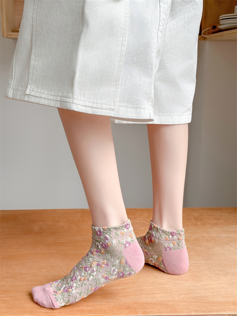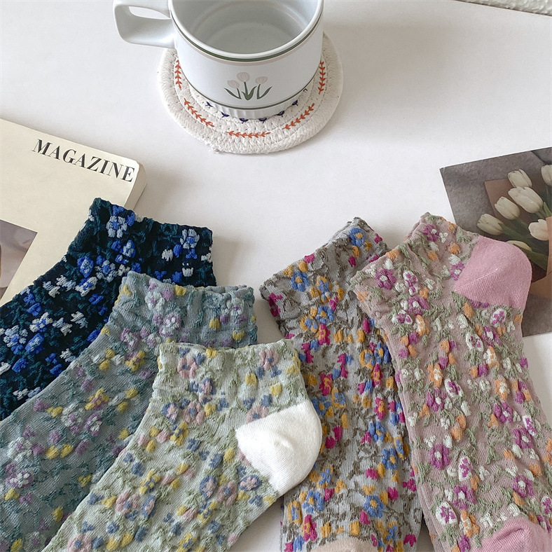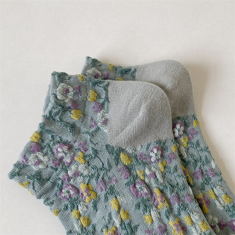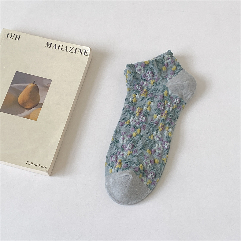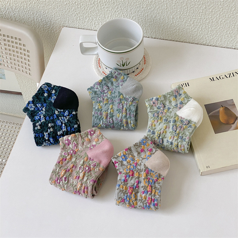 봄과 여름 새로운 일본 빈티지 3 차원 양각 꽃 색상 매칭 여성 보트 양말 Instagram 패션 면 로우 사이드 쇼트 튜브
