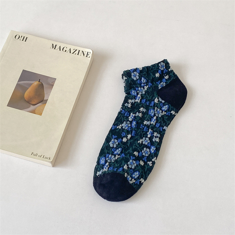 봄과 여름 새로운 일본 빈티지 3 차원 양각 꽃 색상 매칭 여성 보트 양말 Instagram 패션 면 로우 사이드 쇼트 튜브스토어 가기