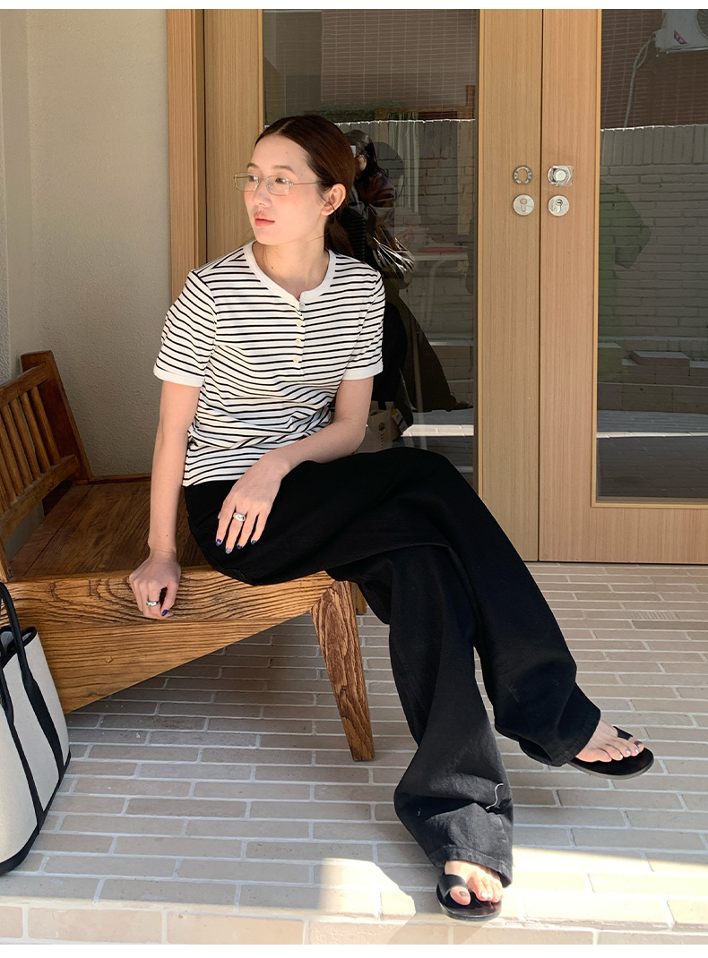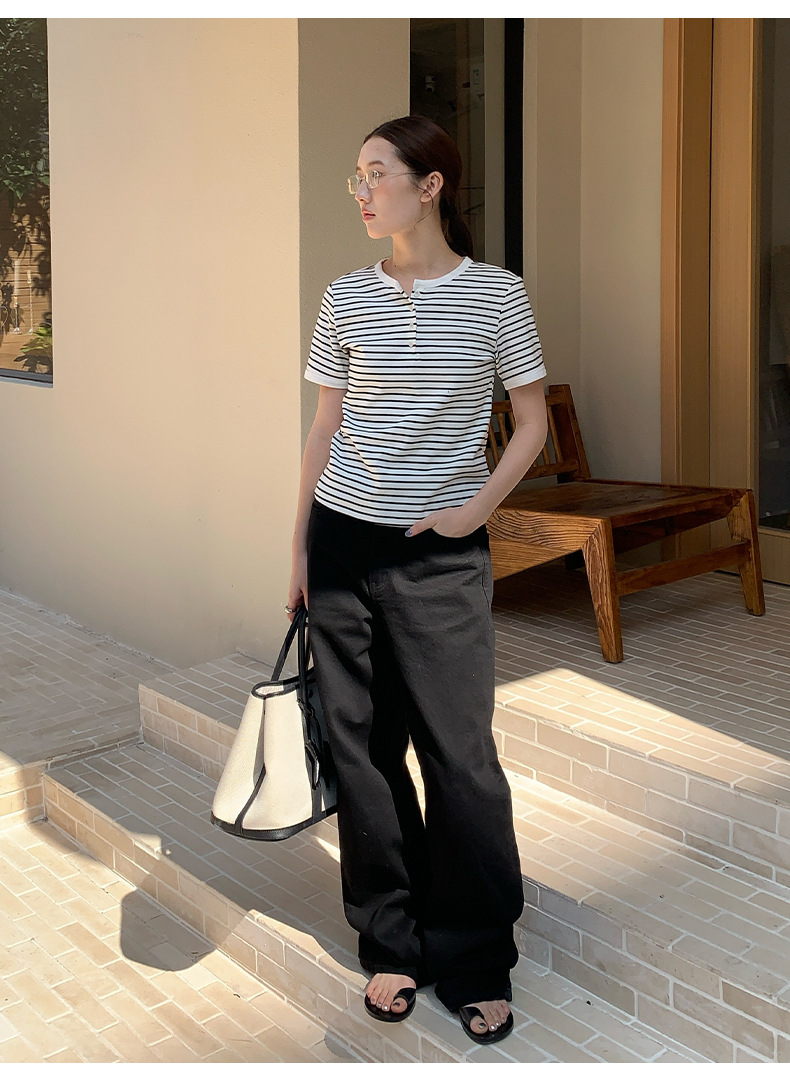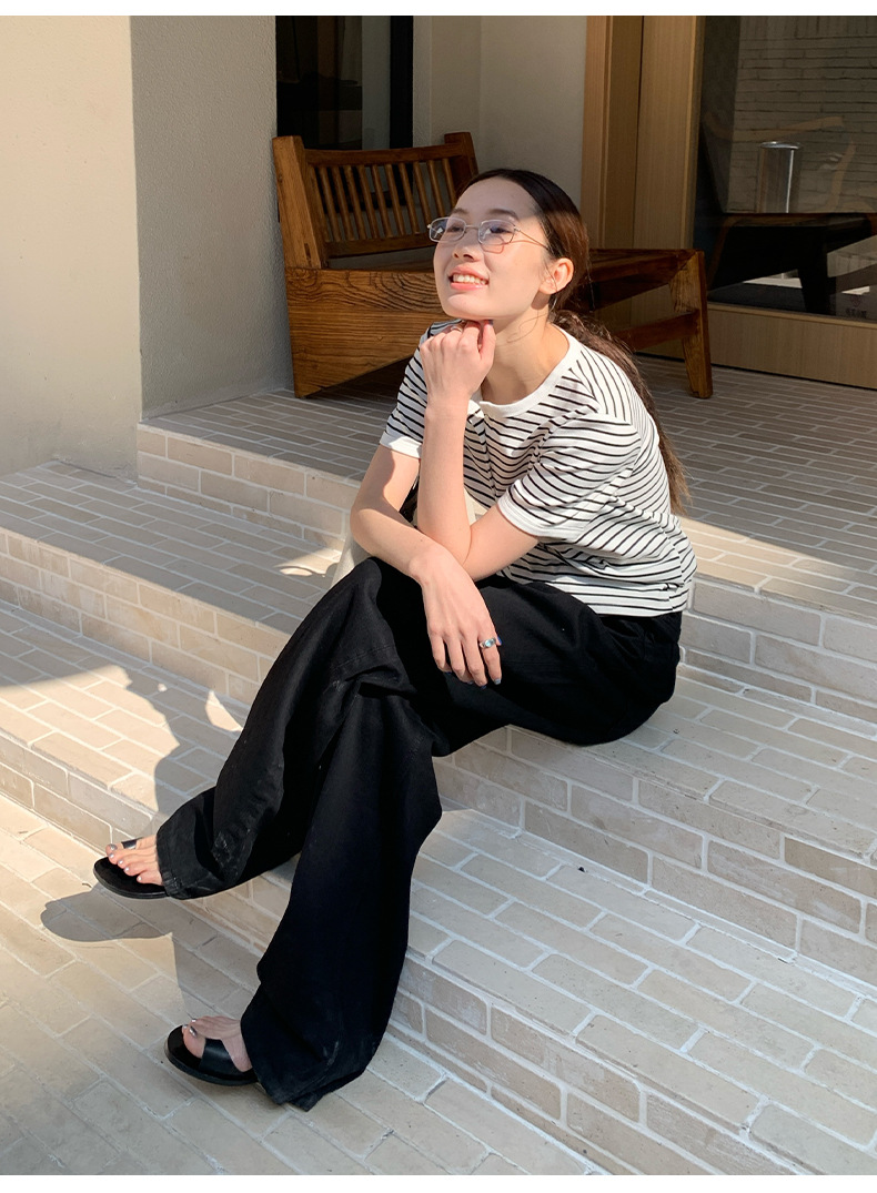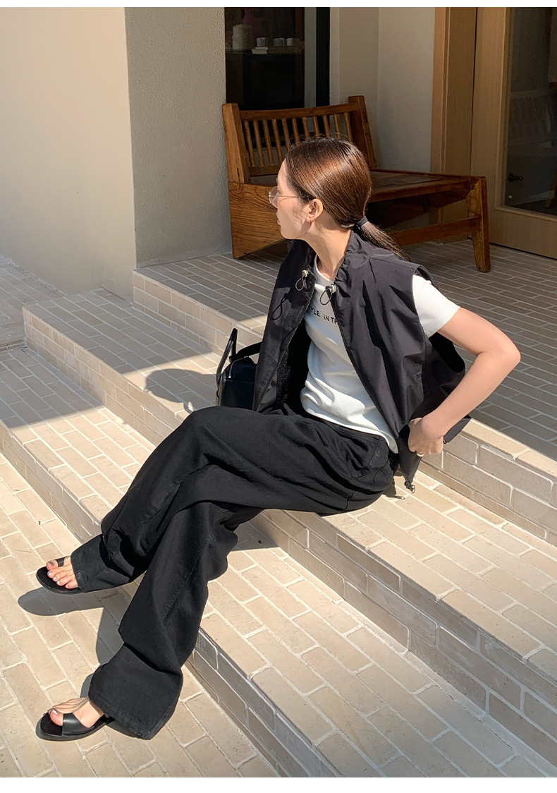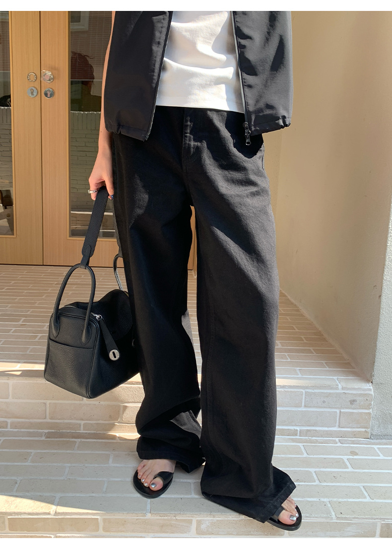 THE MIND 여성용 블랙 청바지 2025 13라인 가을 하이웨이스트 슬림 캐주얼 스트레이트 팬츠 NL026스토어 가기