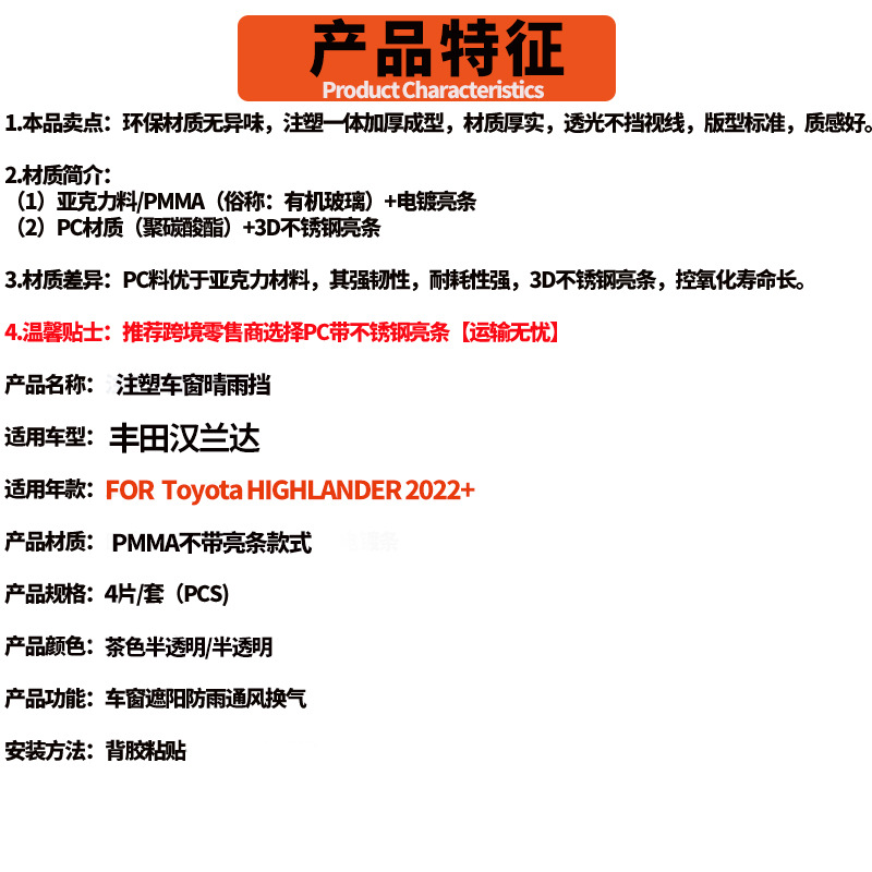 도요타 하이랜더 2022 창 비 및 비 창 도요타 하이랜드 윈도우 바이저