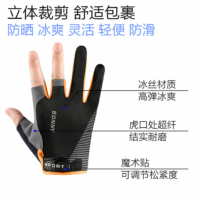 낚시 장갑 여름 아이스 실크 선 스크린 미끄럼 통기성 얇은 이슬 두 손가락 승마 루야 반 손가락 장갑스토어 가기