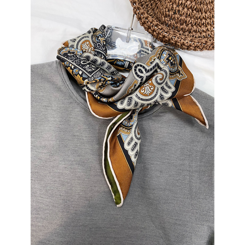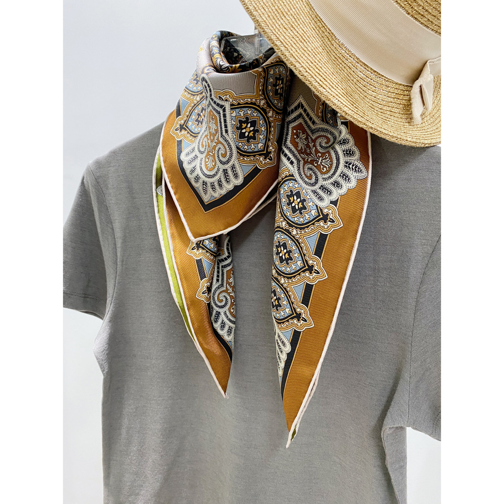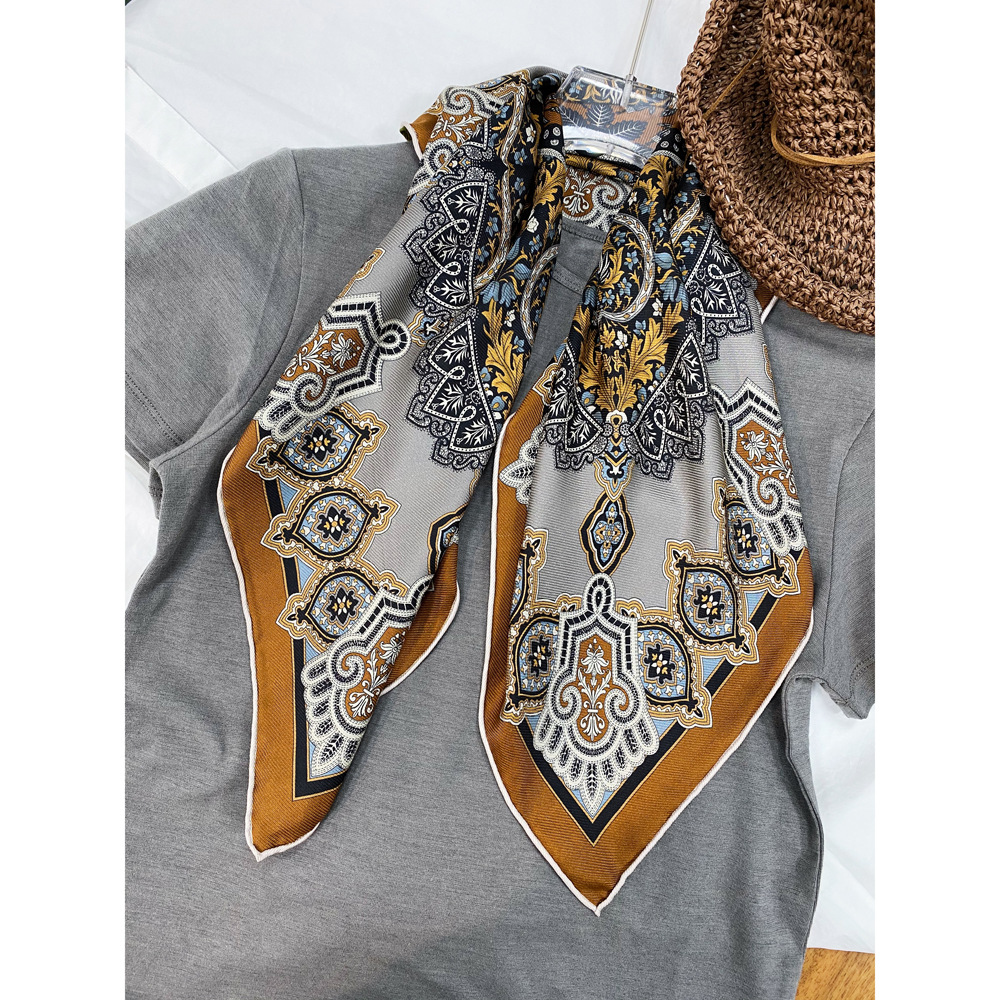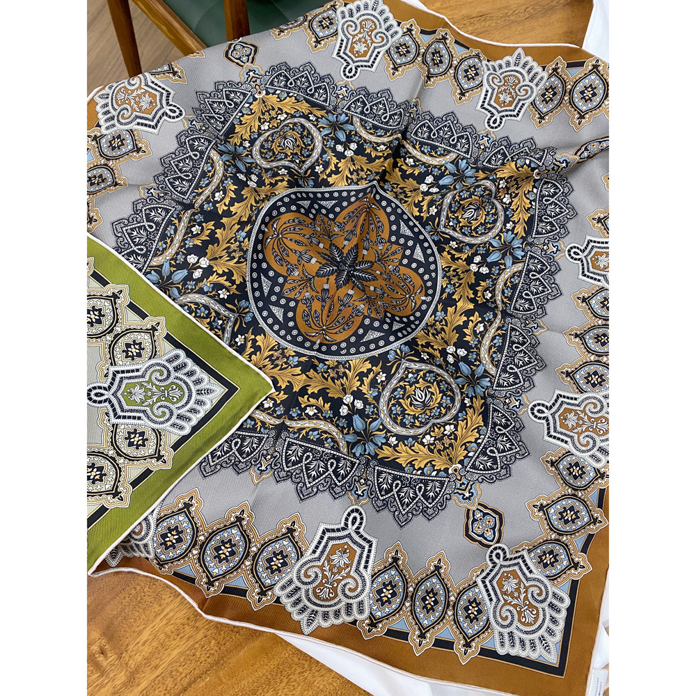 양면 인쇄 진짜 실크 스카프 뽕나무 실크 실크 중간 광장 70 뽕나무 실크 고급 봄 얇은 스카프 복고풍 스카프스토어 가기