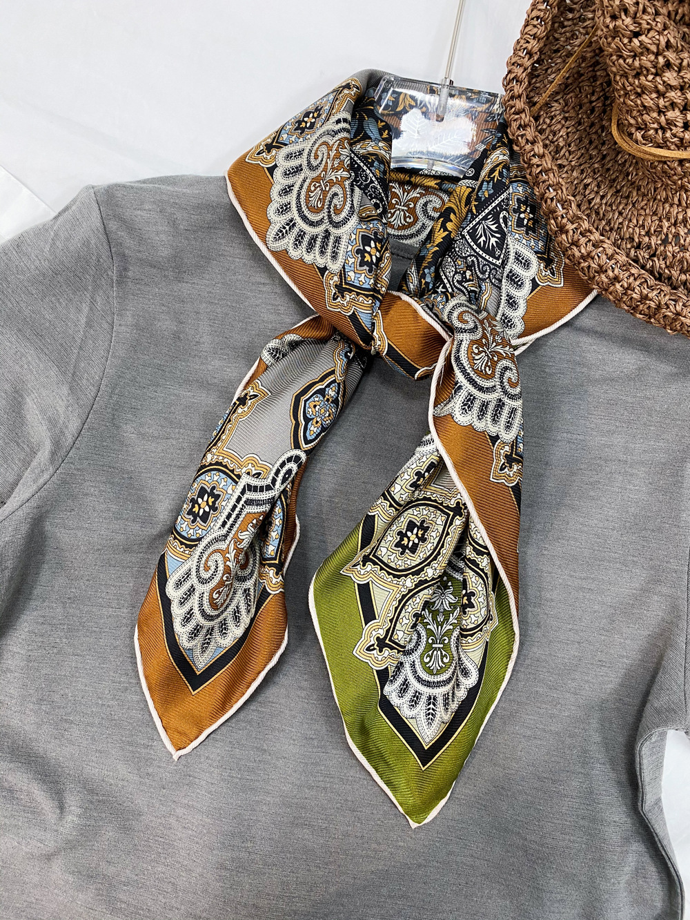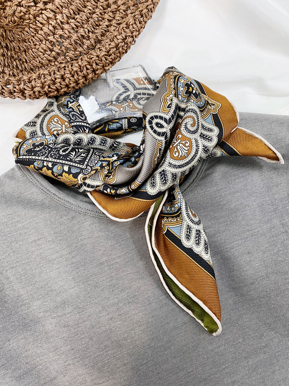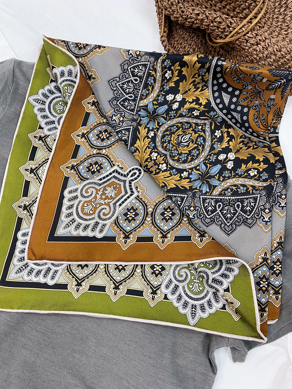 양면 인쇄 진짜 실크 스카프 뽕나무 실크 실크 중간 광장 70 뽕나무 실크 고급 봄 얇은 스카프 복고풍 스카프스토어 가기
