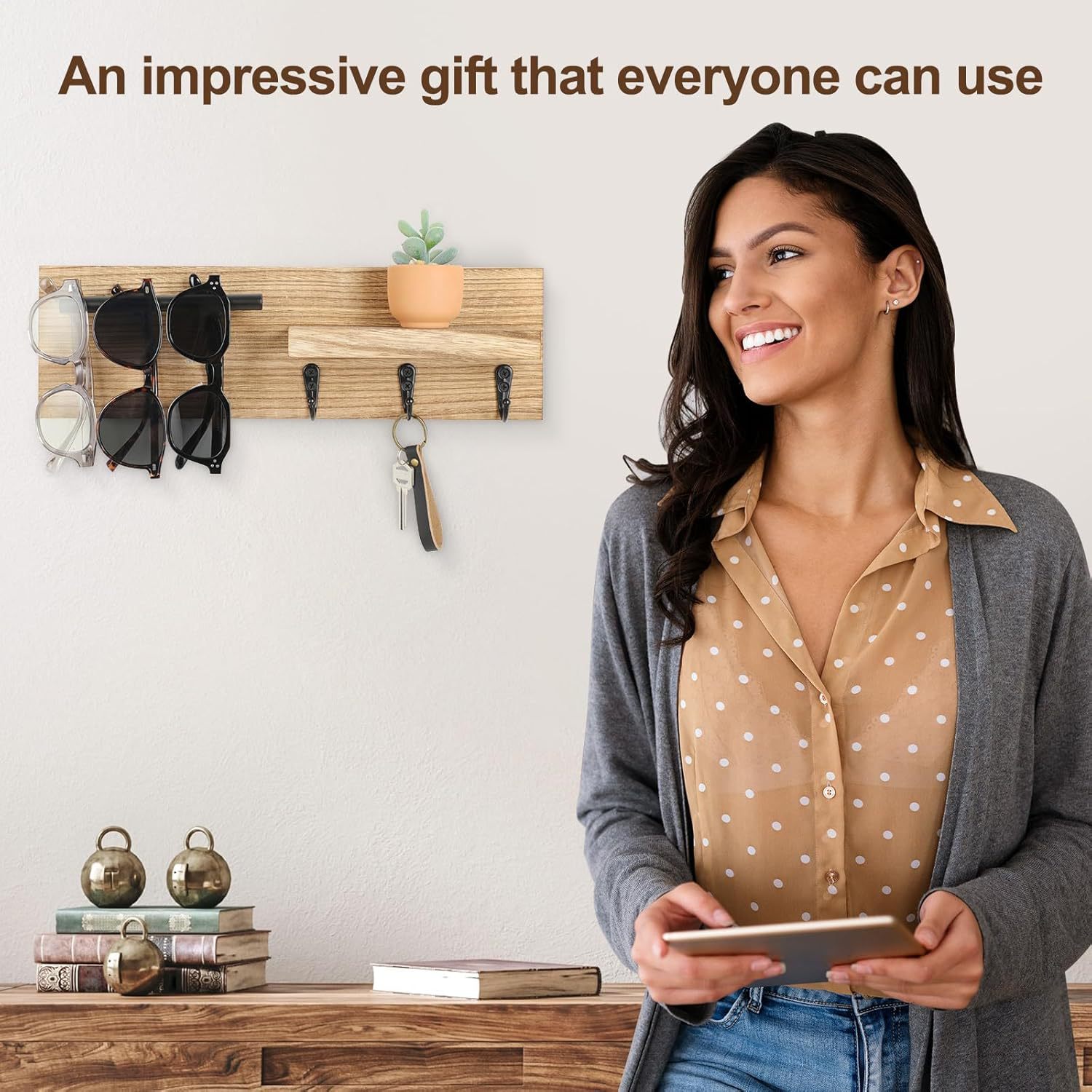 나무 키 랙 홈 입구 벽 장식 랙 침실 벽 코트 후크 나무 스토리지 랙스토어 가기