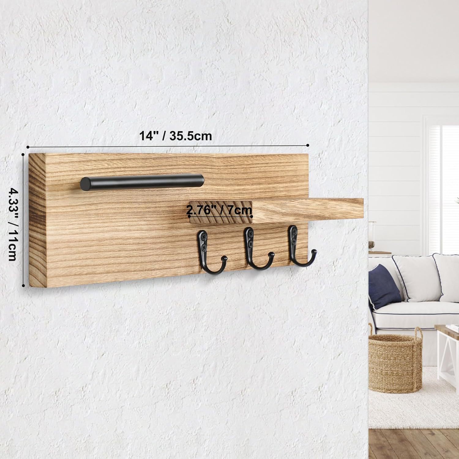 나무 키 랙 홈 입구 벽 장식 랙 침실 벽 코트 후크 나무 스토리지 랙