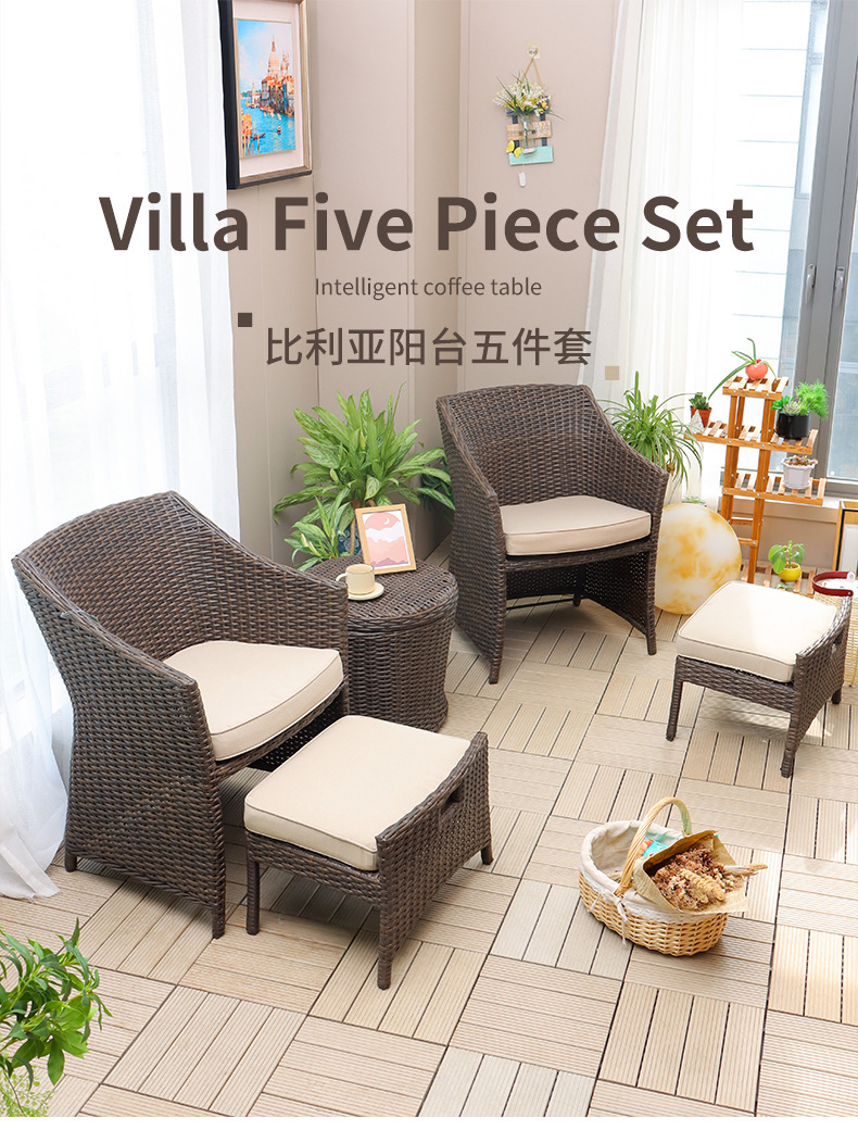 등나무 보관 야외 안뜰 야외 발코니 테이블과 의자 작은 조합 빌라 홈스테이 카페 레저 소파