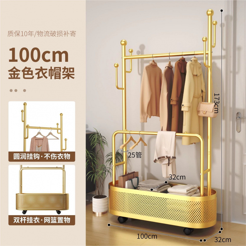 • [거대 두꺼운 풀 카본 스틸] 100CM 골드 - 메쉬 바구니 수납 + 유니버설 휠