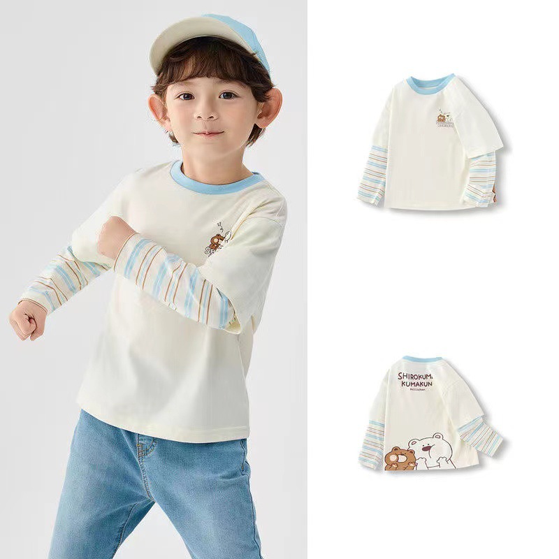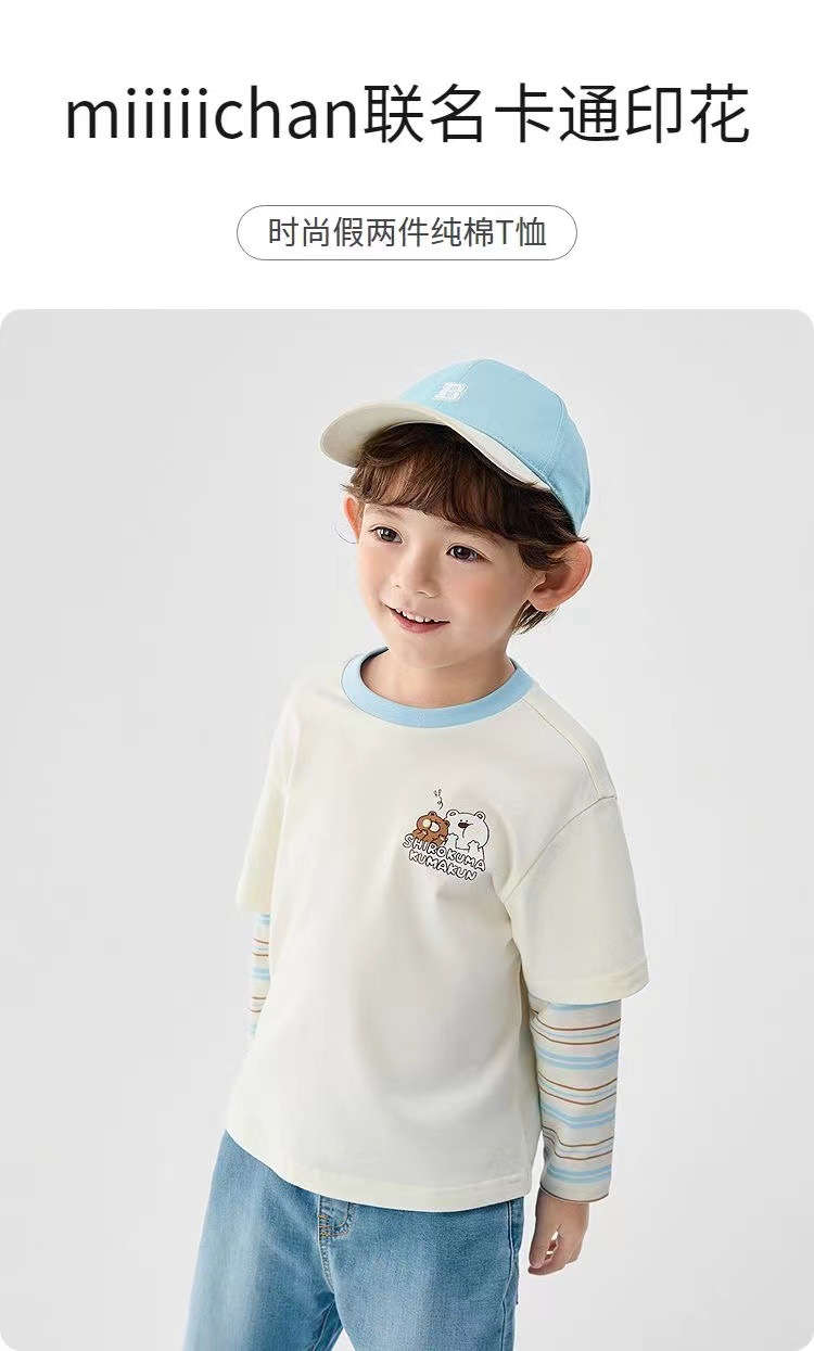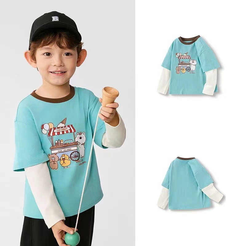 아동복 아동 긴팔 티셔츠 2025 신상 봄옷 남아 여아 순면 이중 레이어 디자인 유아 봄옷 신상스토어 가기
