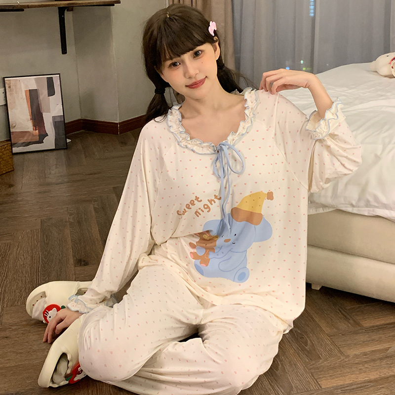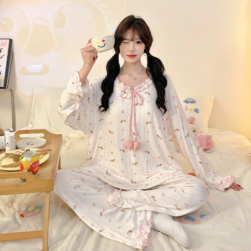 봄과 여름 여자 모달 잠옷 어린이 달콤한 중학교 학생 큰 여자 18 세 얇은 에어컨 의류 홈 의류스토어 가기