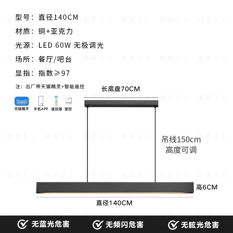 이탈리아 미니멀리스트 레스토랑 샹들리에 현대 가벼운 고급 식탁 바 아일랜드 테이블 디자이너 모든 구리 하이 엔드 한 단어 스트립 램프스토어 가기