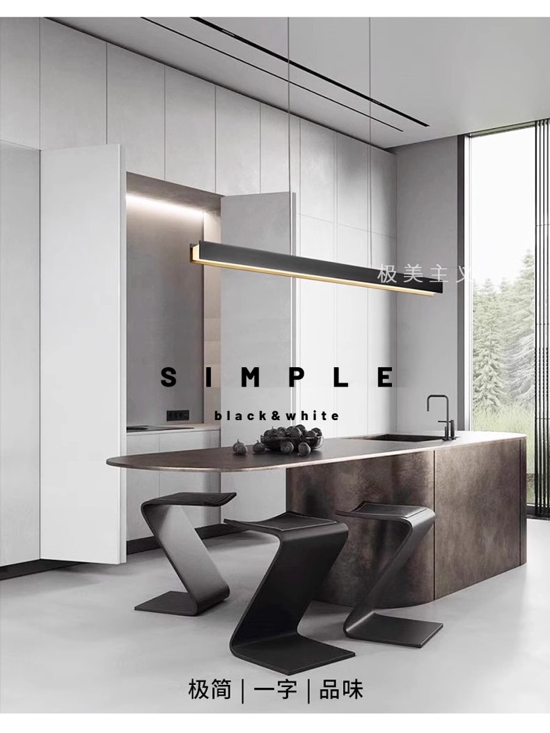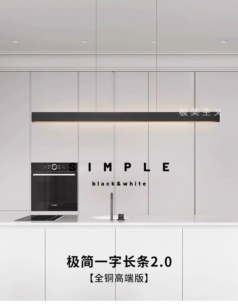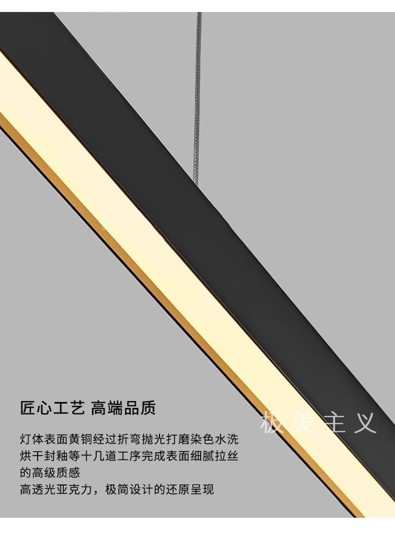 이탈리아 미니멀리스트 레스토랑 샹들리에 현대 가벼운 고급 식탁 바 아일랜드 테이블 디자이너 모든 구리 하이 엔드 한 단어 스트립 램프