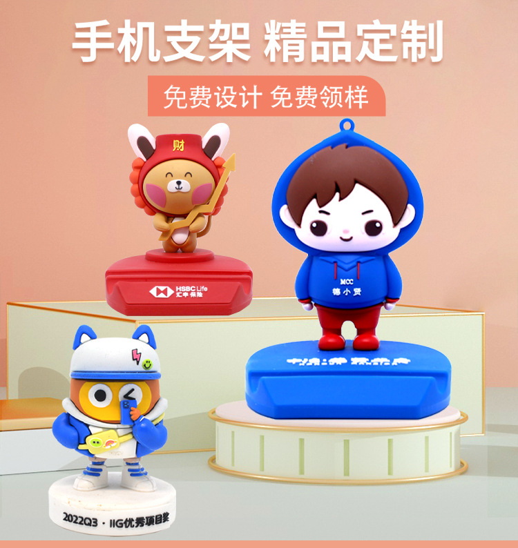 PVC 부드러운 접착제 만화 휴대 전화 스탠드 맞춤형 귀여운 3 차원 성격 인형 마스코트 게으른 데스크탑 스탠드 diy스토어 가기