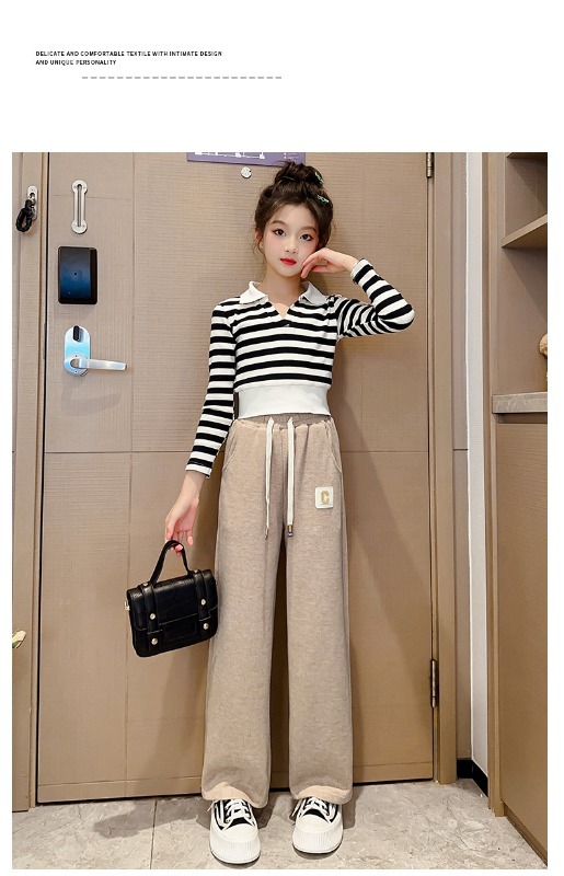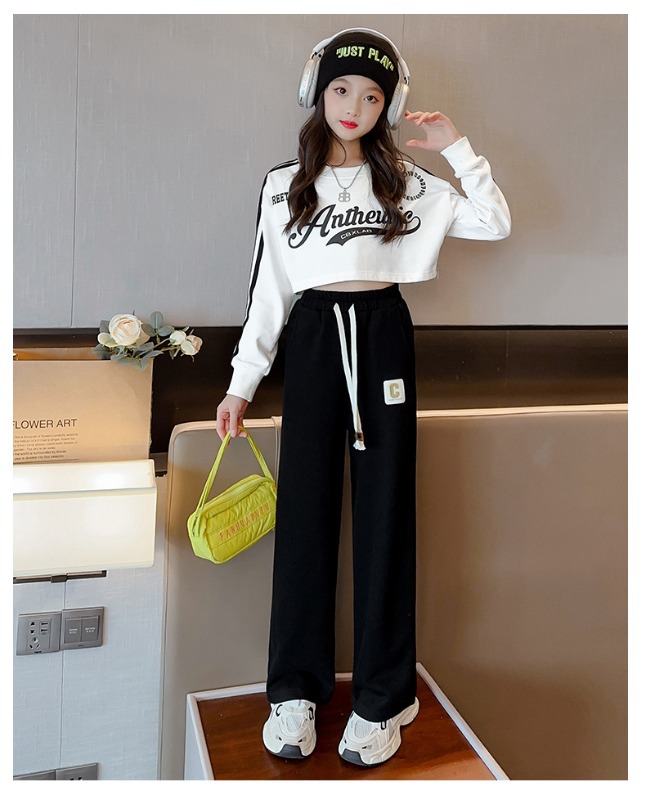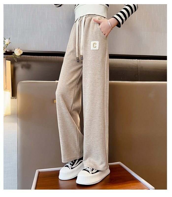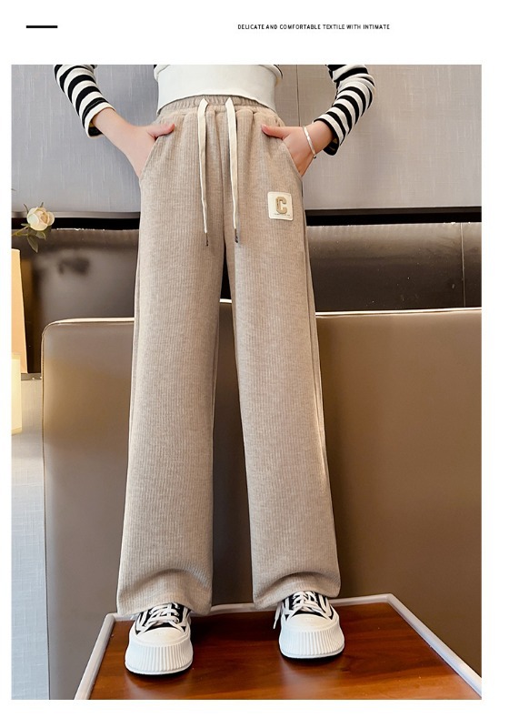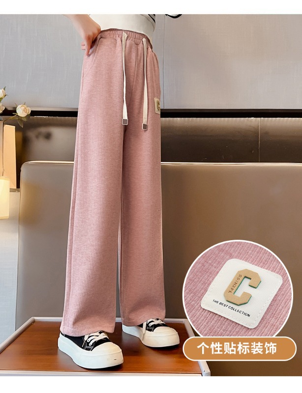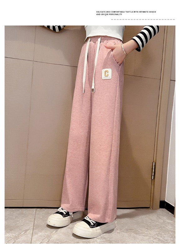 소녀 바지 2025 새로운 봄 원피스 큰 어린이 봄과 가을 유행 캐주얼 와이드 레그 스트레이트 유행 스포츠 바지