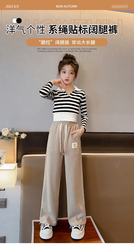 소녀 바지 2025 새로운 봄 원피스 큰 어린이 봄과 가을 유행 캐주얼 와이드 레그 스트레이트 유행 스포츠 바지스토어 가기