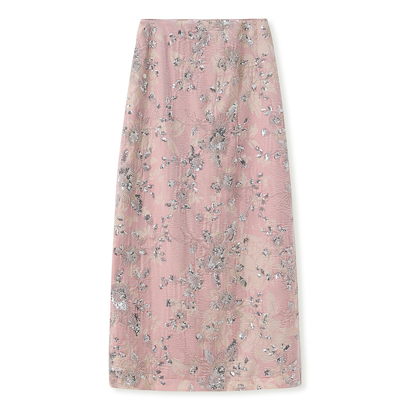 2025 년 이른 봄 Guofeng 새로운 자수 Sequins 중공업 구슬 여성을위한 새로운 중국 코트 오버 스커트 투피스 세트 MZ084