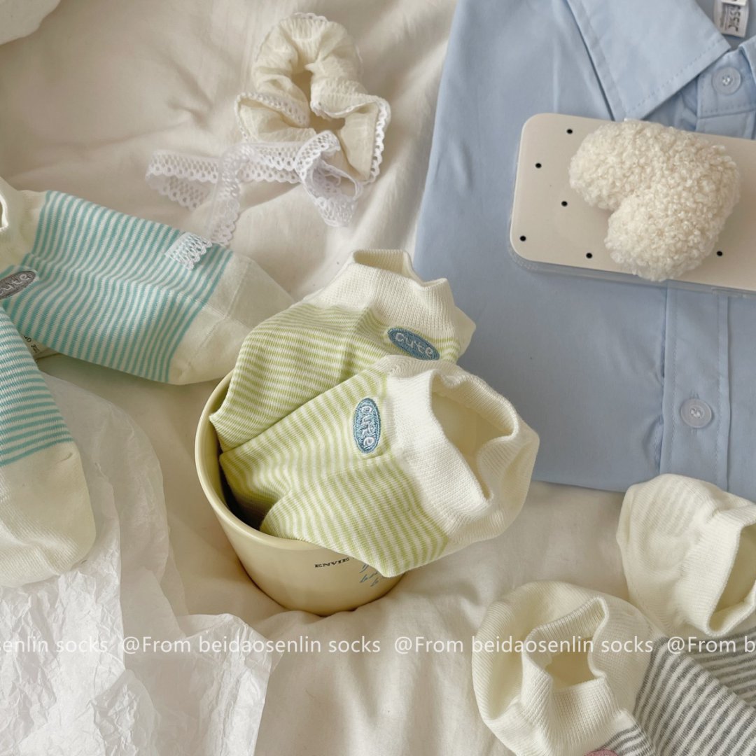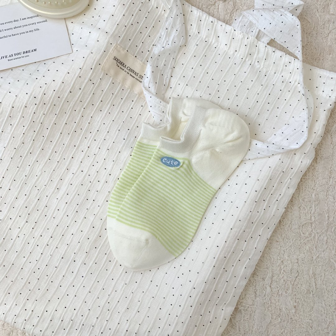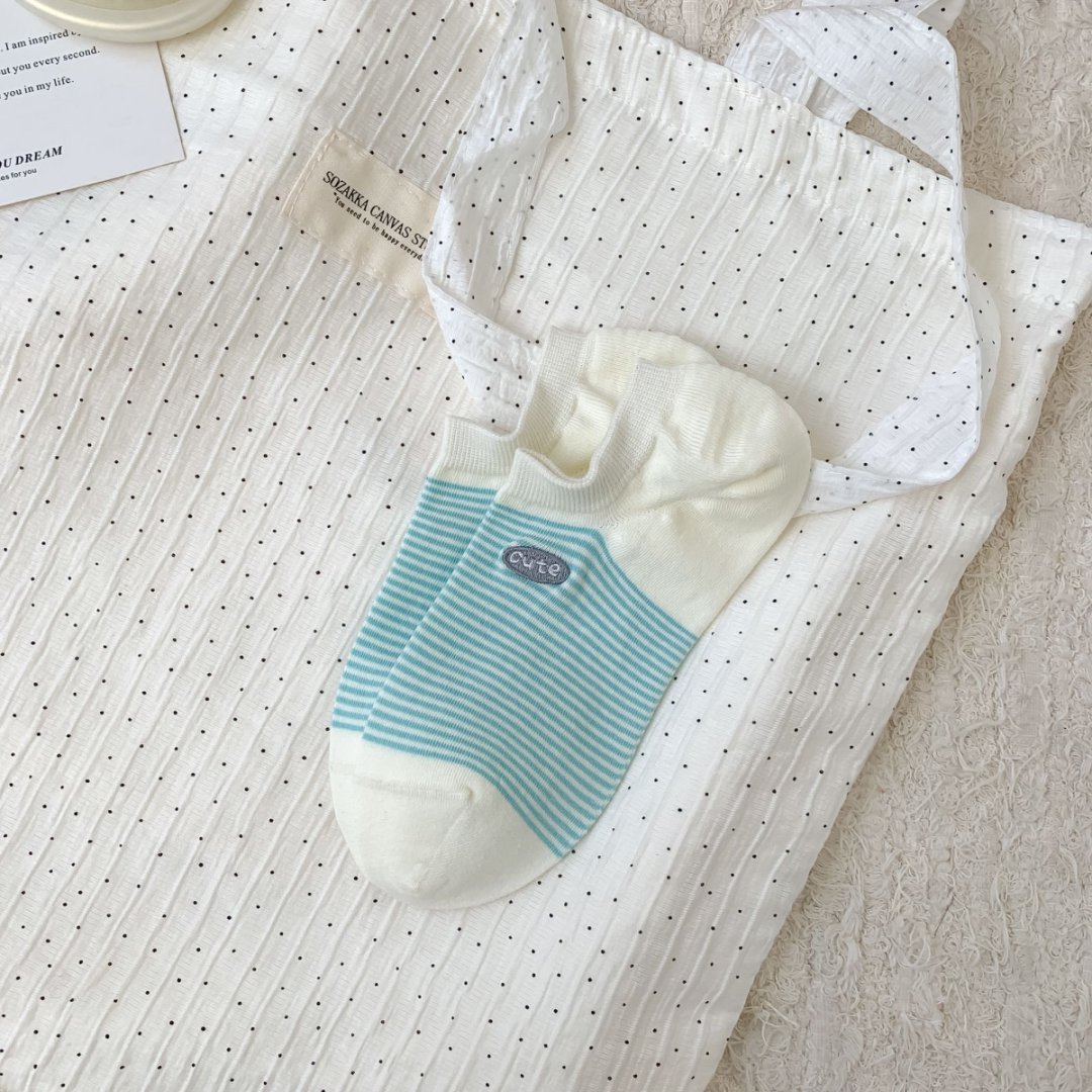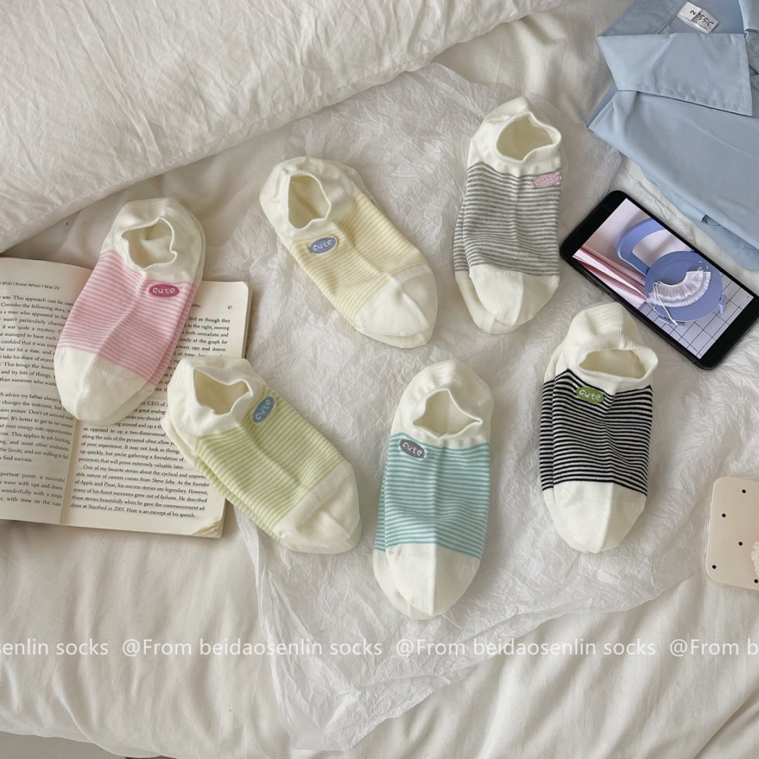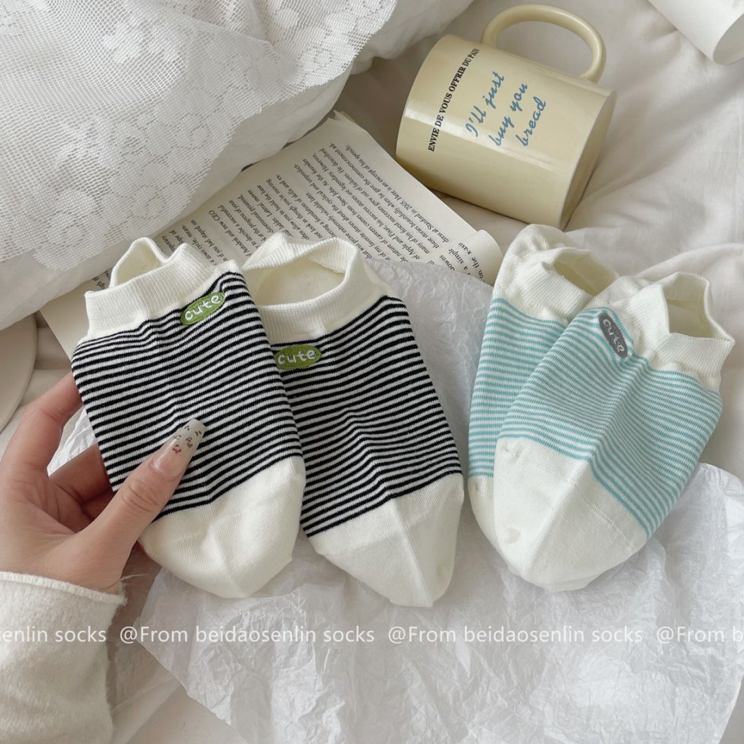 봄과 여름 새로운 한국 스타일 양말 여성면 다채로운 줄무늬 자수 Yuanbao 양말 부드럽고 편안한 보트 양말 Zhuji 양말