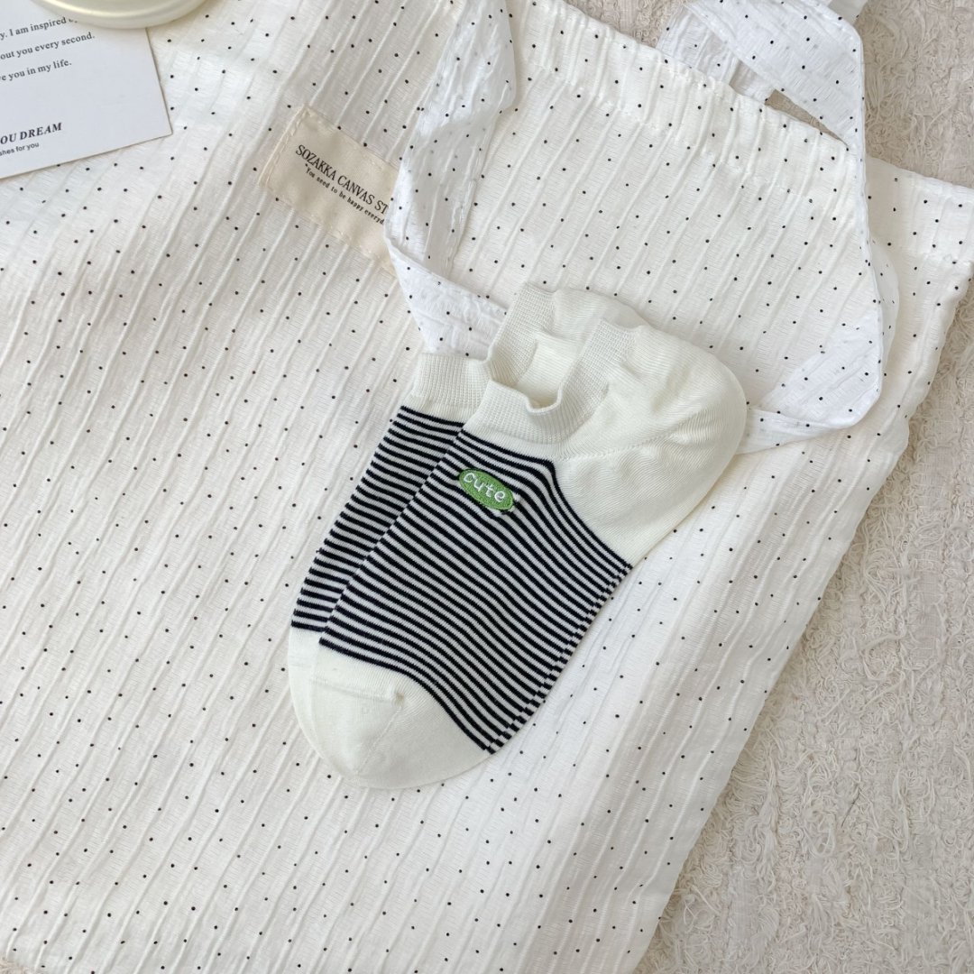 봄과 여름 새로운 한국 스타일 양말 여성면 다채로운 줄무늬 자수 Yuanbao 양말 부드럽고 편안한 보트 양말 Zhuji 양말스토어 가기