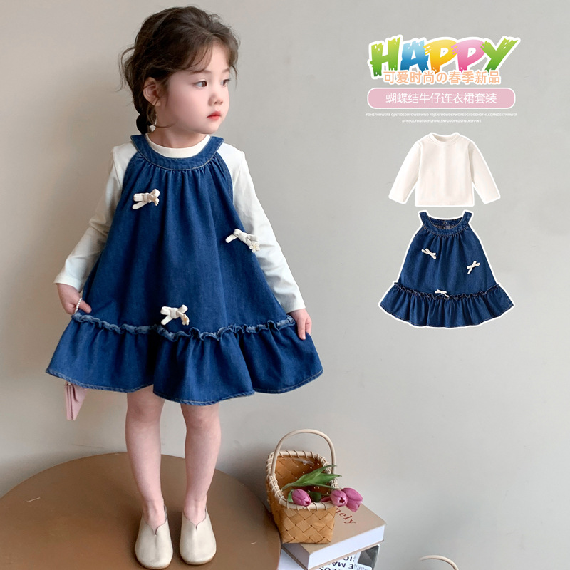 소녀 원피스 봄 2025 새로운 스타일 어린이 스트랩 공주 원피스 봄과 가을 아기의 데님 원피스 세트스토어 가기