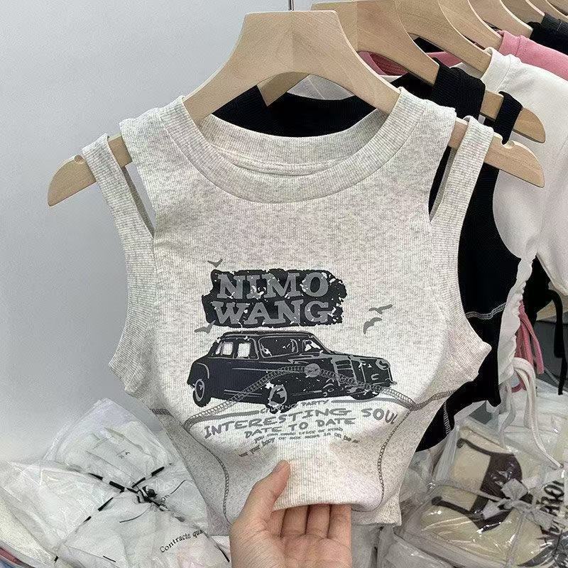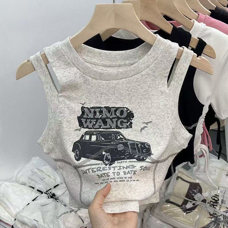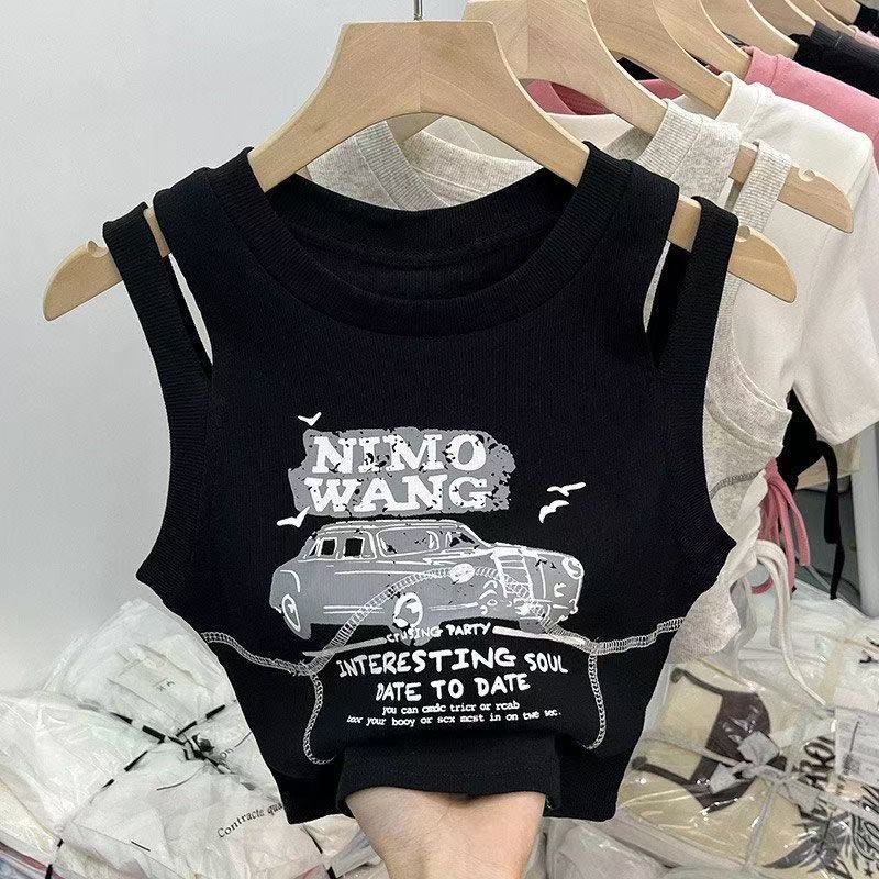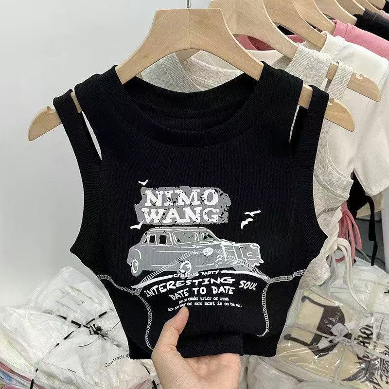 소녀를위한 달콤한 쿨 스타일 짧은 조끼 2025 여름 새로운 여성의 보물 세련된 디자인 센스 민소매 탑 티셔츠 슬링