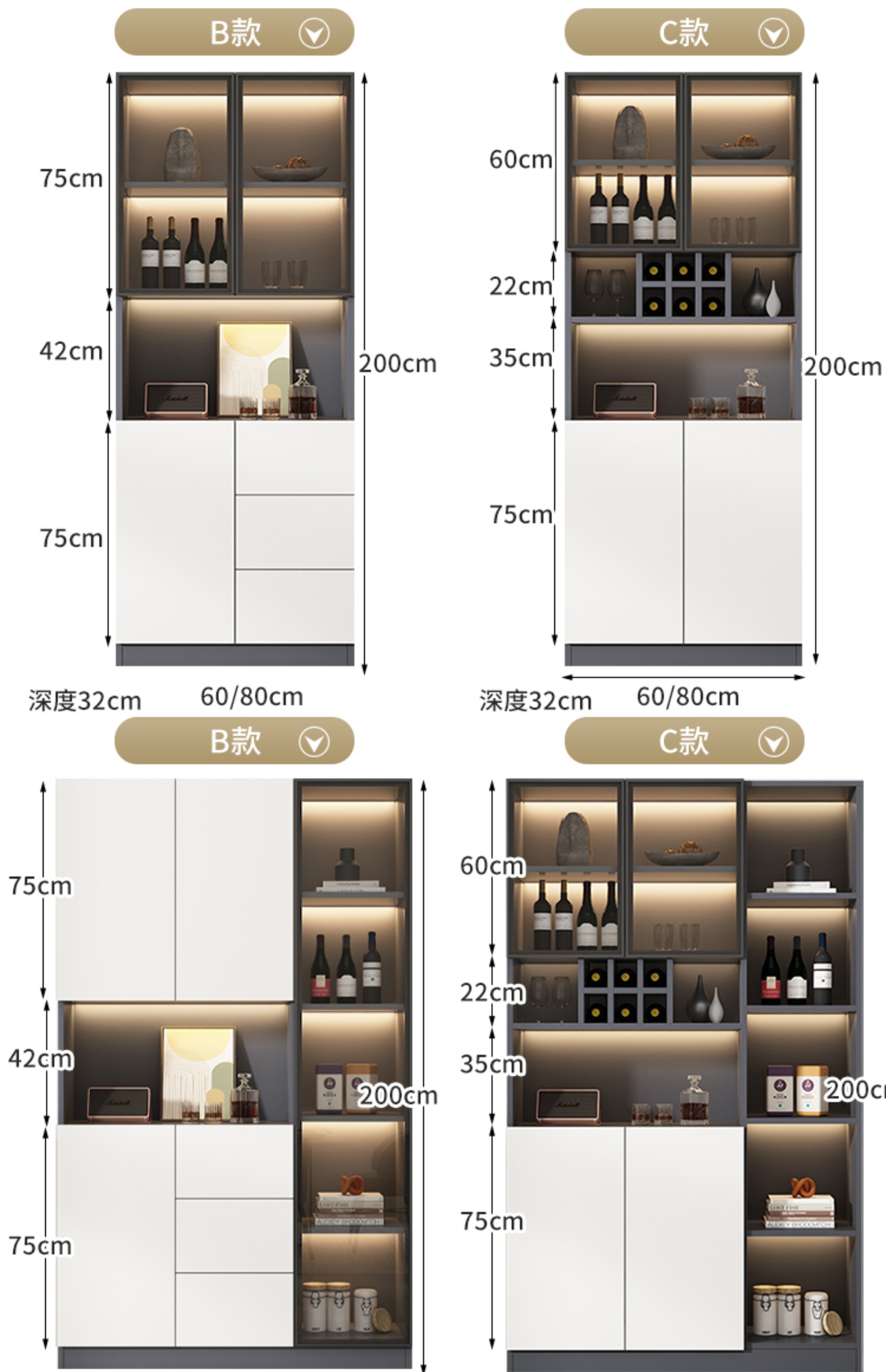 다용도 수납장, 와인장, 일체형 모던 심플 럭셔리 거실 수납장, 벽걸이형 식기 수납장, 수납장스토어 가기