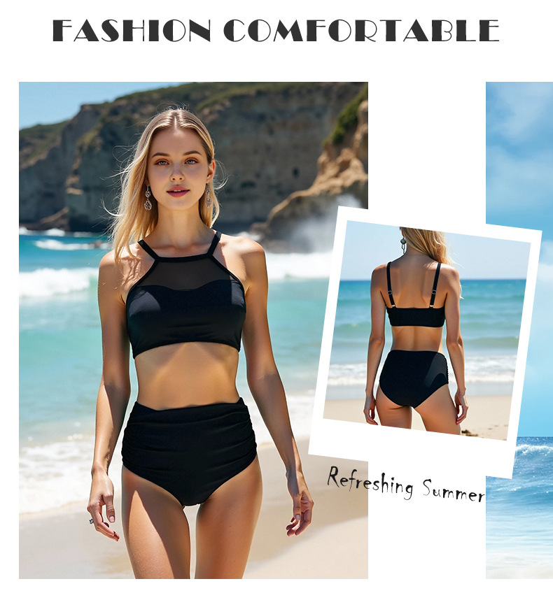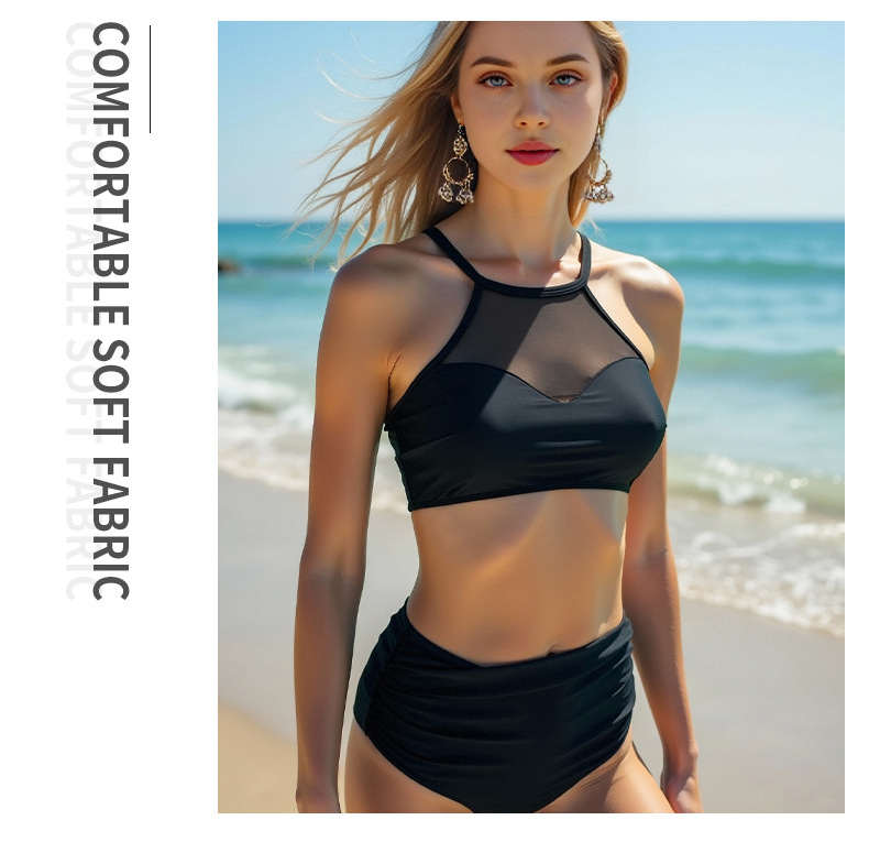 섹시한 여성용 분리형 수영복, 삼각형 로우 웨이스트 홀터넥 하이 웨이스트 2026 신상 단색 유럽 및 미국 스타일 비키니 수영복