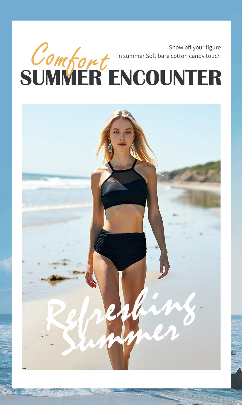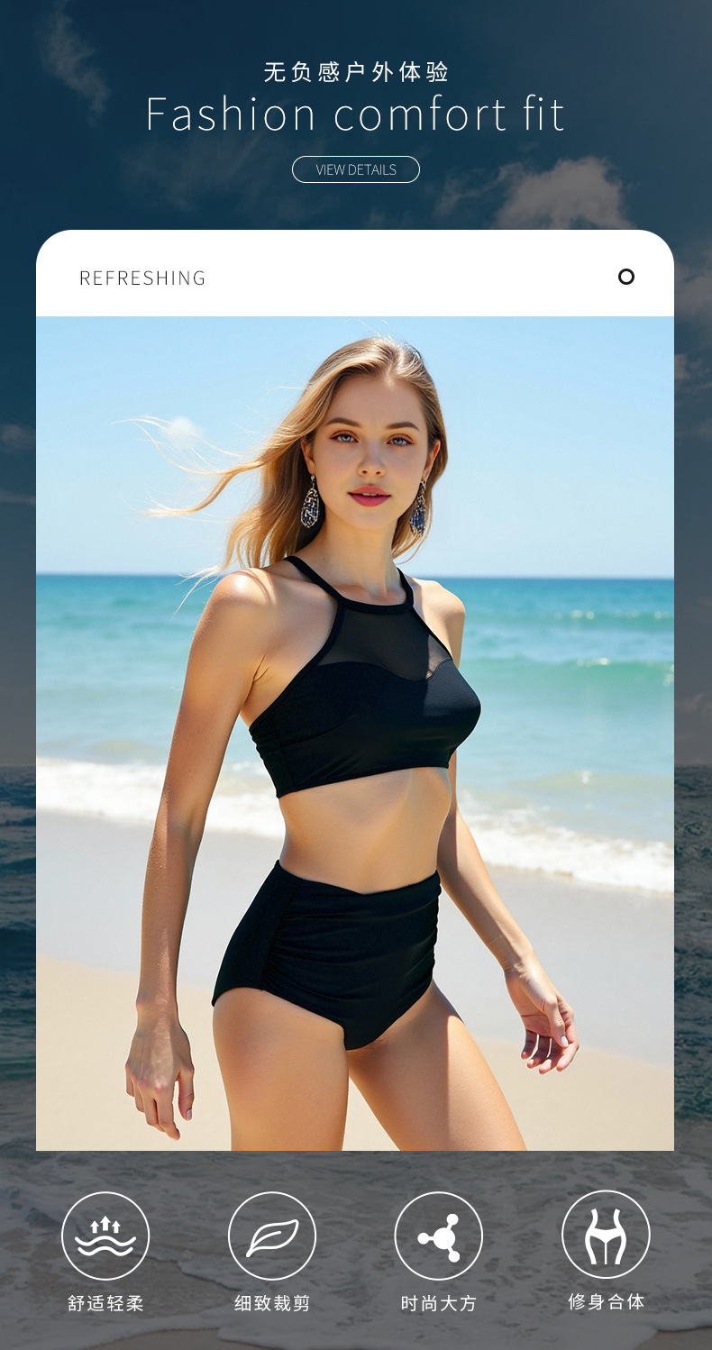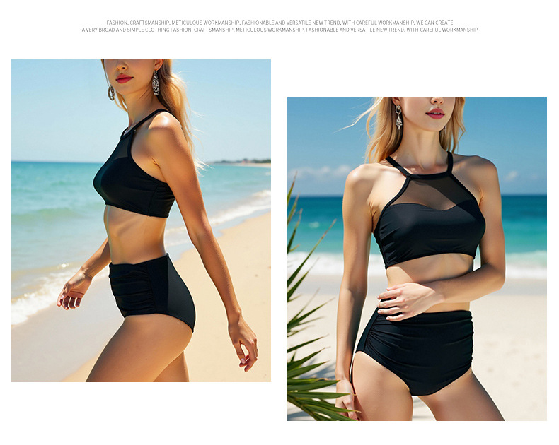 섹시한 여성용 분리형 수영복, 삼각형 로우 웨이스트 홀터넥 하이 웨이스트 2026 신상 단색 유럽 및 미국 스타일 비키니 수영복스토어 가기